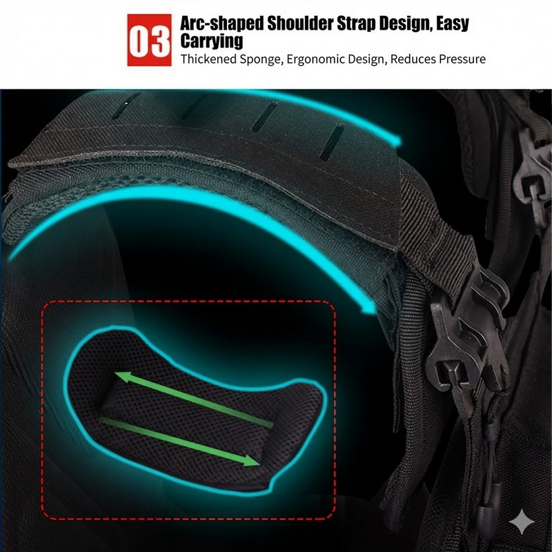 The shoulder straps appear wider and better contoured, which can help reduce pressure and discomfort during extended use. This design also supports more balanced weight distribution while moving.