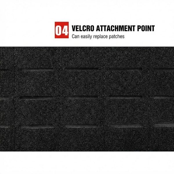 A front Velcro area allows users to attach name patches, team patches, or identification markers. It is a small but practical detail for users who prefer a more complete tactical setup.