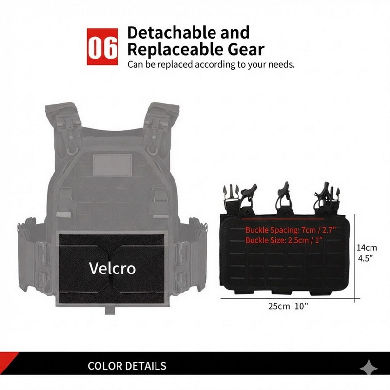 The vest feels sturdy, fits well, and looks clean when worn. The adjustment straps are easy to use, and it stays comfortable even after extended wear. I used it for outdoor activities and tactical training, and it performed very well.