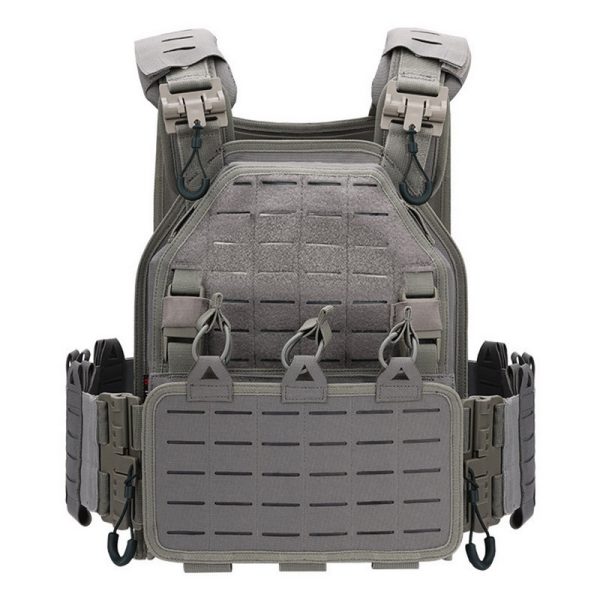 The front panel uses a laser-cut MOLLE design that makes it easy to attach pouches, utility pockets, and tactical modules based on your preferred setup. The flat, clean surface also gives the vest a sharper and more structured appearance.
