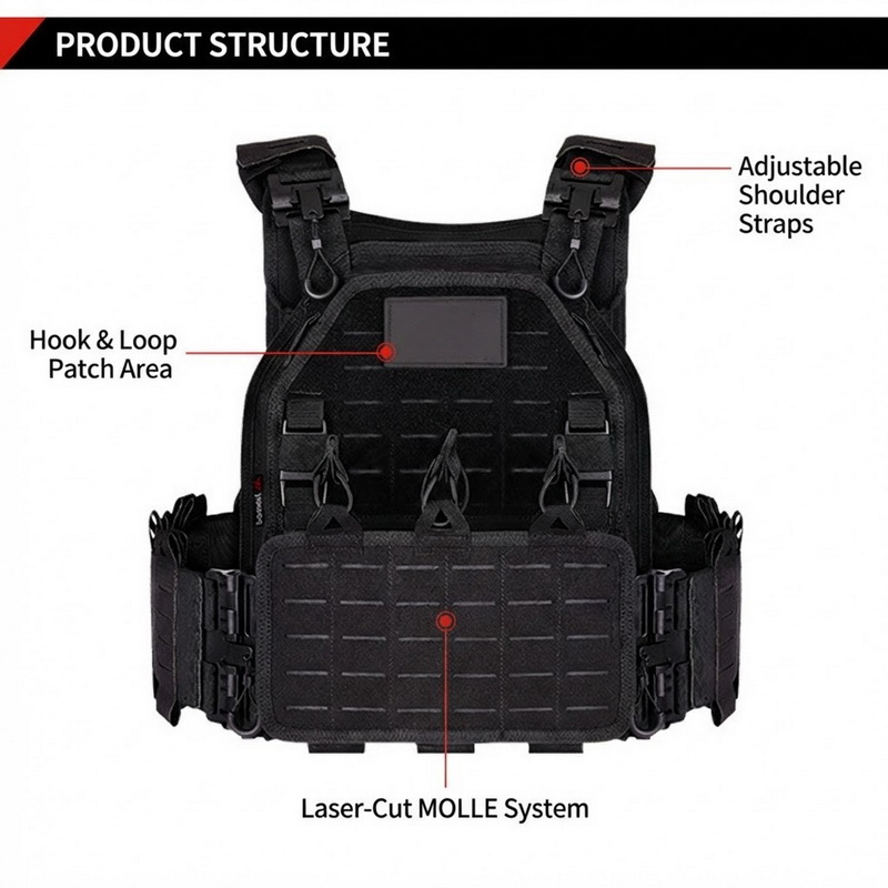 • Sales copy note: Position it as tactical fashion / training gear; do not describe it as certified ballistic protection unless verified