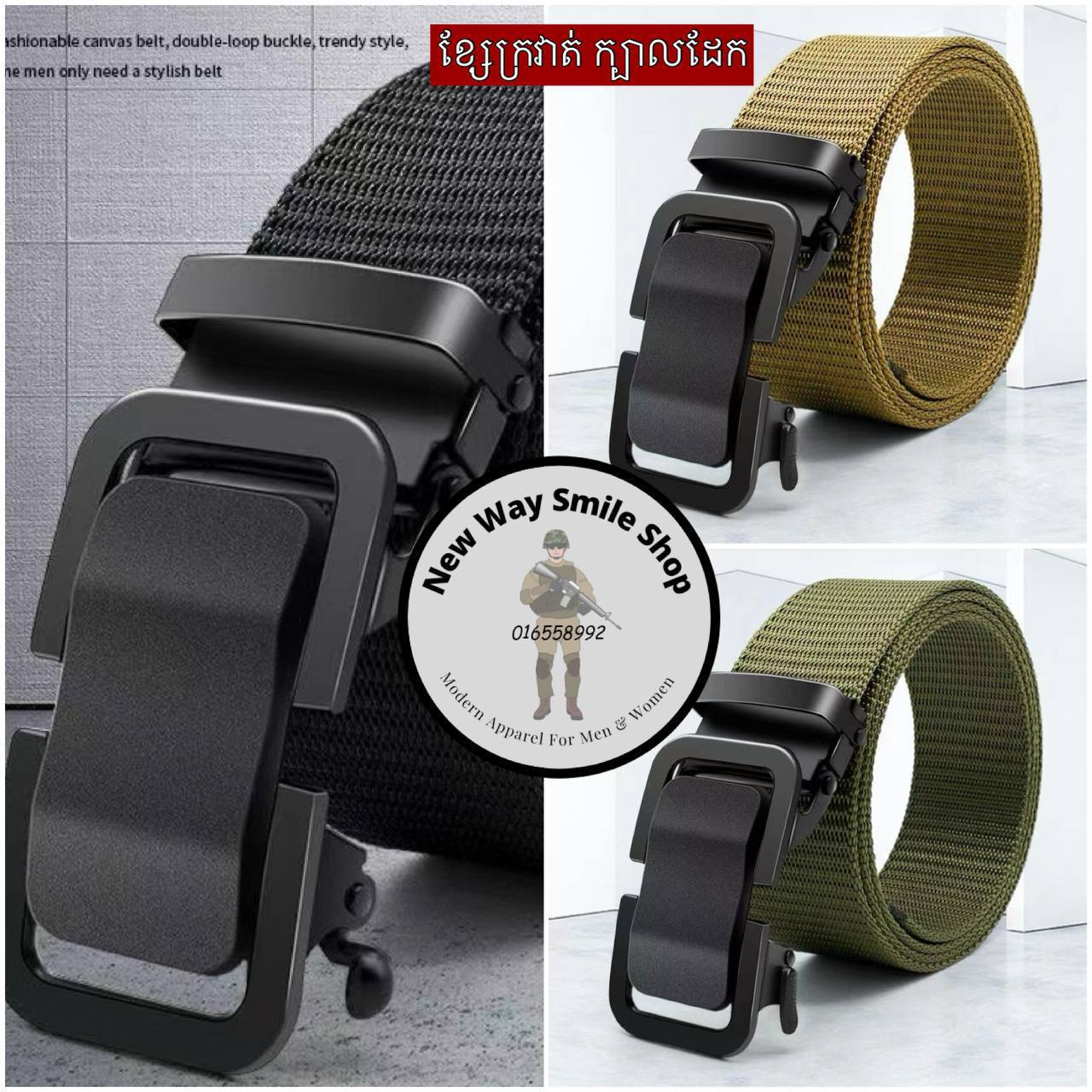 The product is shown in several versatile colorways including black, navy, grey, khaki, brown, and olive green. These tones make the belt easy to match with jeans, cargo pants, outdoor trousers, or tactical-inspired outfits, giving it broad everyday appeal.
