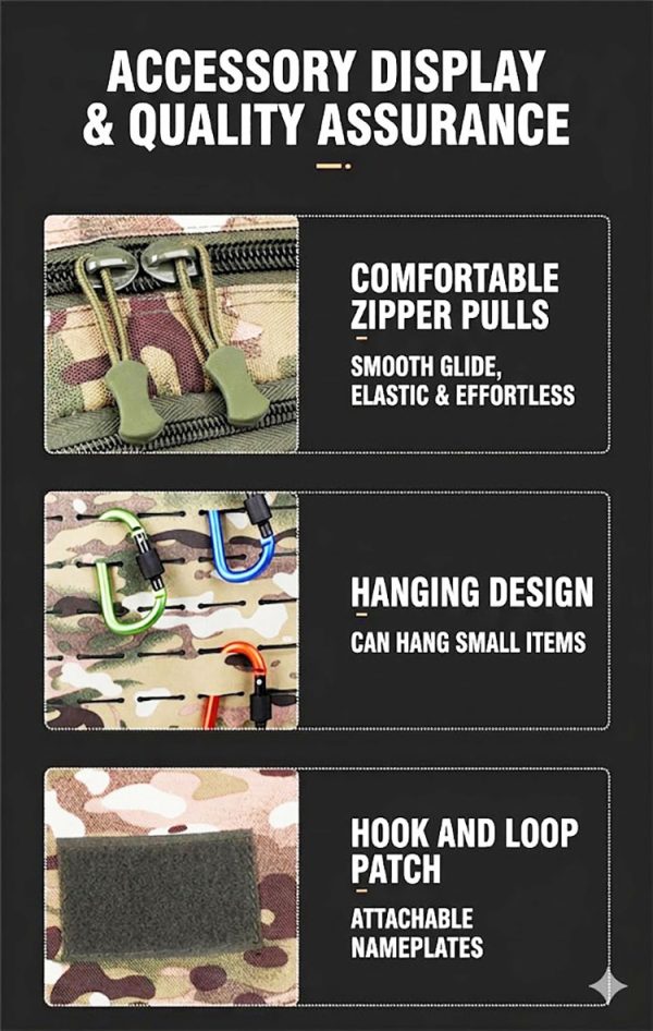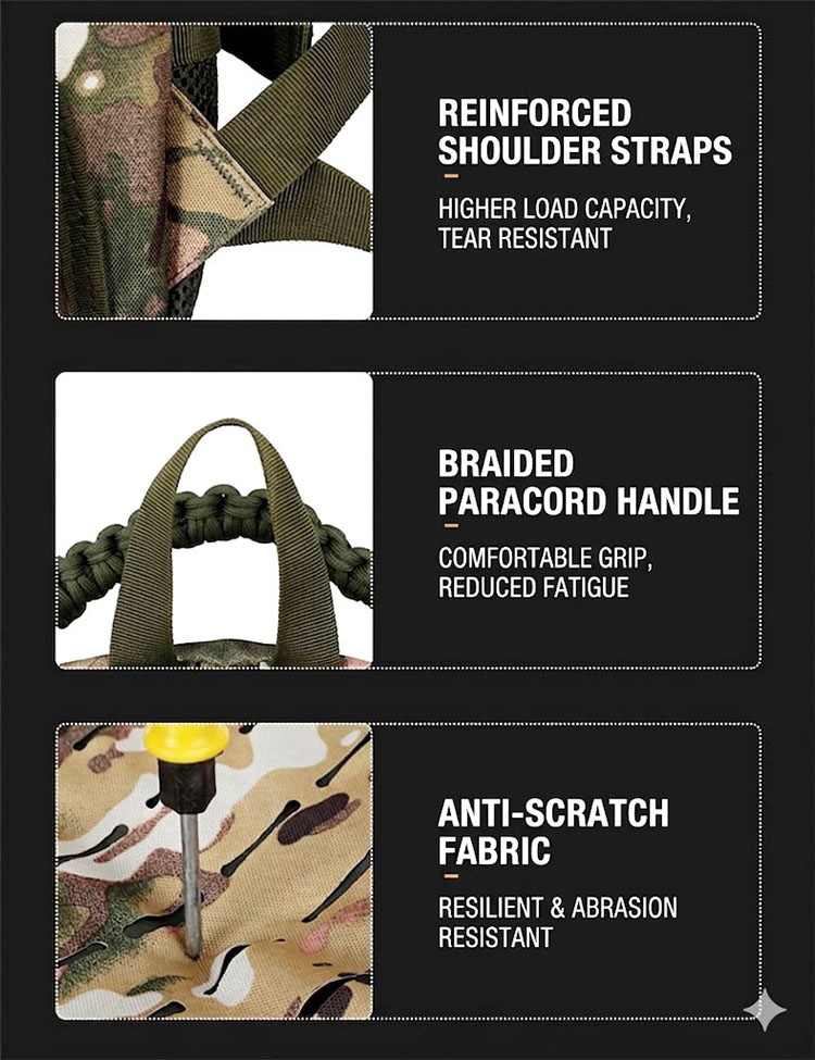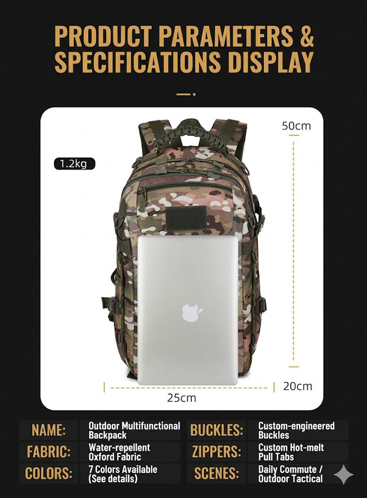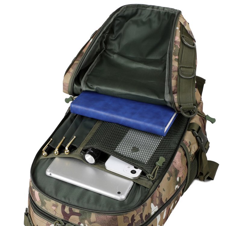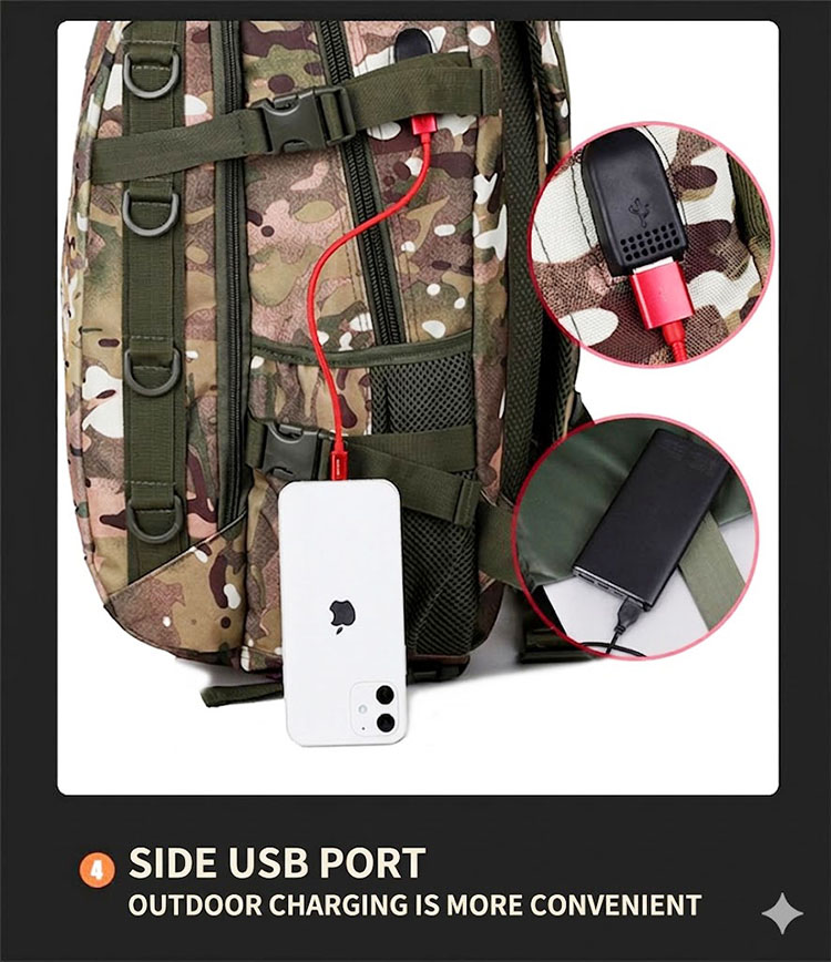 Camouflage Design with Functional Structure The camouflage exterior gives the bag a strong outdoor character, while the front layout is designed for useful organization. The overall structure appears streamlined and balanced, making it easy to carry whether you are heading to work, moving around the city, or packing for a short outdoor outing. For customers who enjoy tactical-inspired gear, this design brings a confident field-ready style in a more practical everyday format.