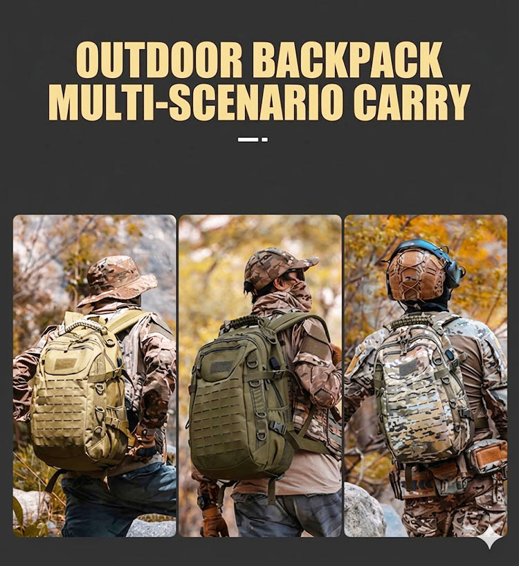 Built for Practical Everyday Use This backpack combines a tactical outdoor look with a clean, wearable shape that works well for commuting, casual travel, day trips, and regular daily carry. It feels suitable for customers who want a bag that looks rugged and functional without becoming too bulky for normal everyday use.