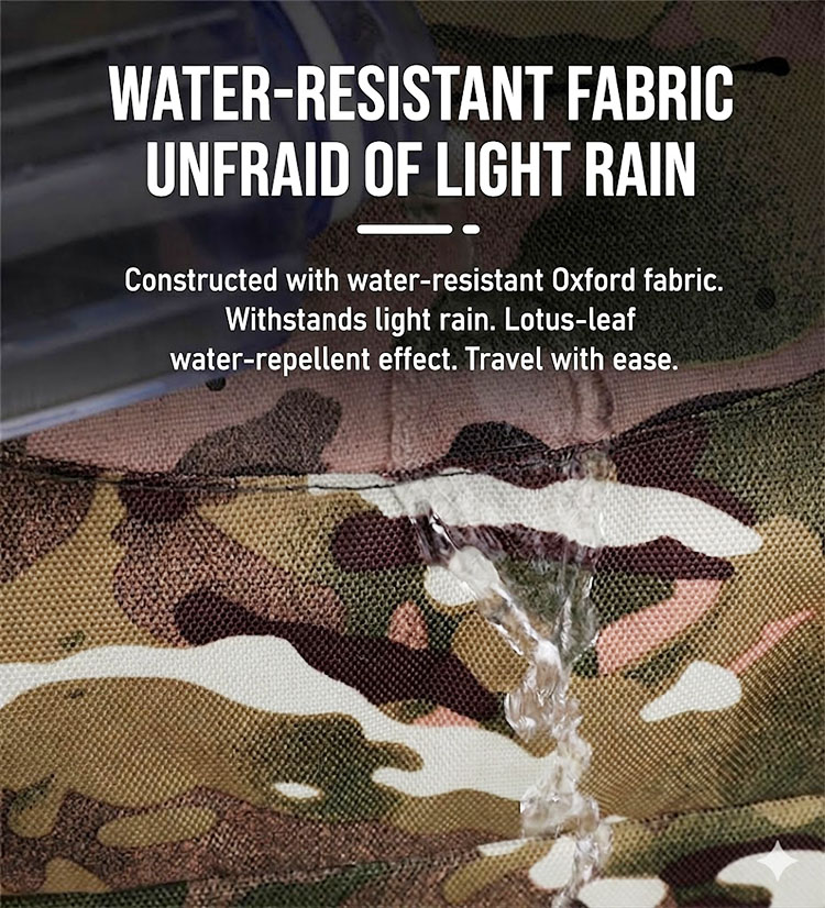 The camouflage style looks great, and the bag is comfortable to carry. Good choice for daily use in hot weather and light rain.