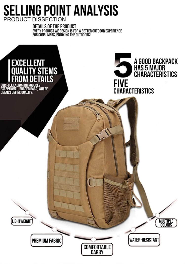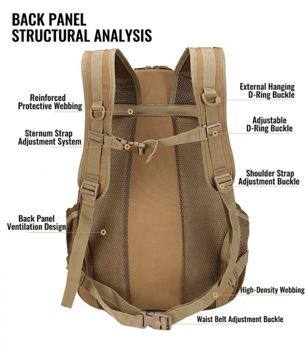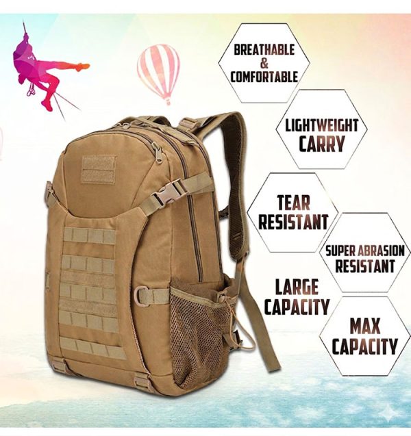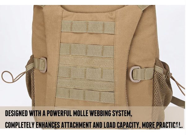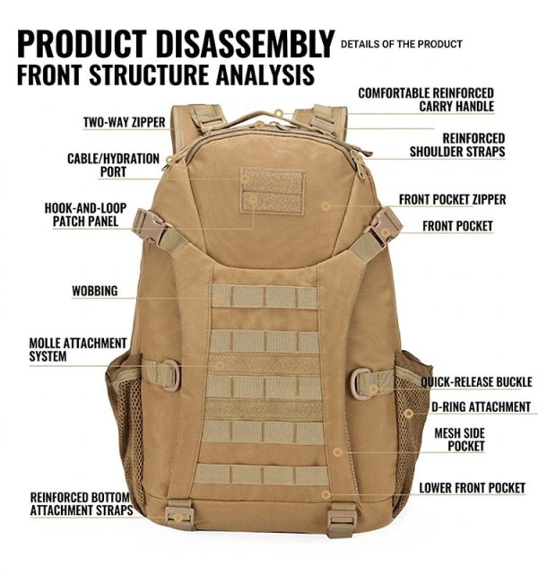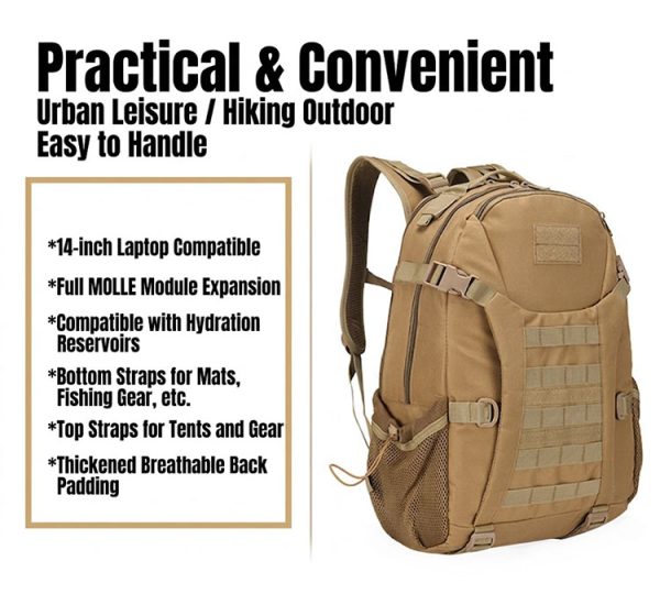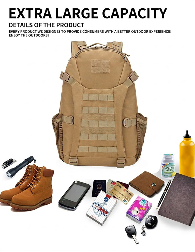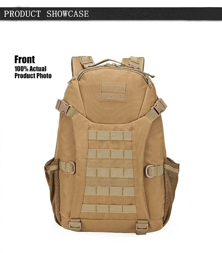 Functional Design for Everyday Outdoor Use This backpack is built for customers who want a practical outdoor bag with a tactical look and useful storage. The overall shape is structured and streamlined, making it suitable for hiking, walking, training, travel, and everyday carry. It offers a balanced profile that feels capable without looking oversized, which makes it easy to use in both outdoor and urban settings.