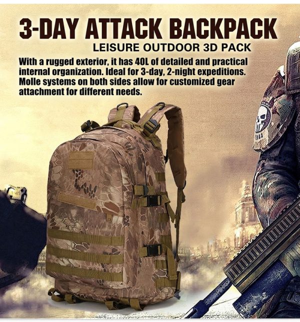 BP09 Outdoor Tactical 3D Attack Backpack – Camouflage Training, Camping & Everyday Adventure Pack