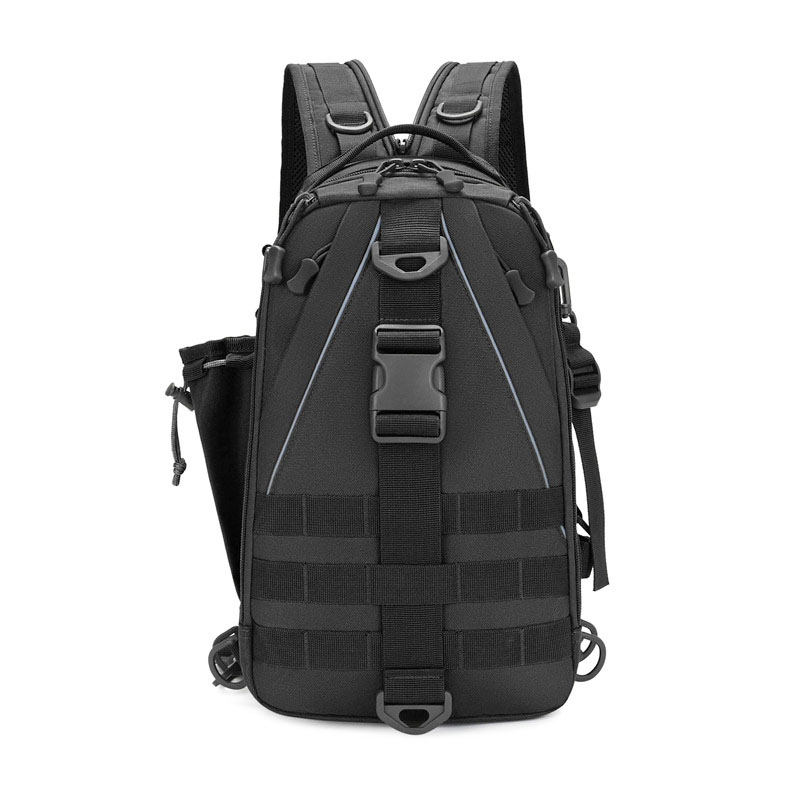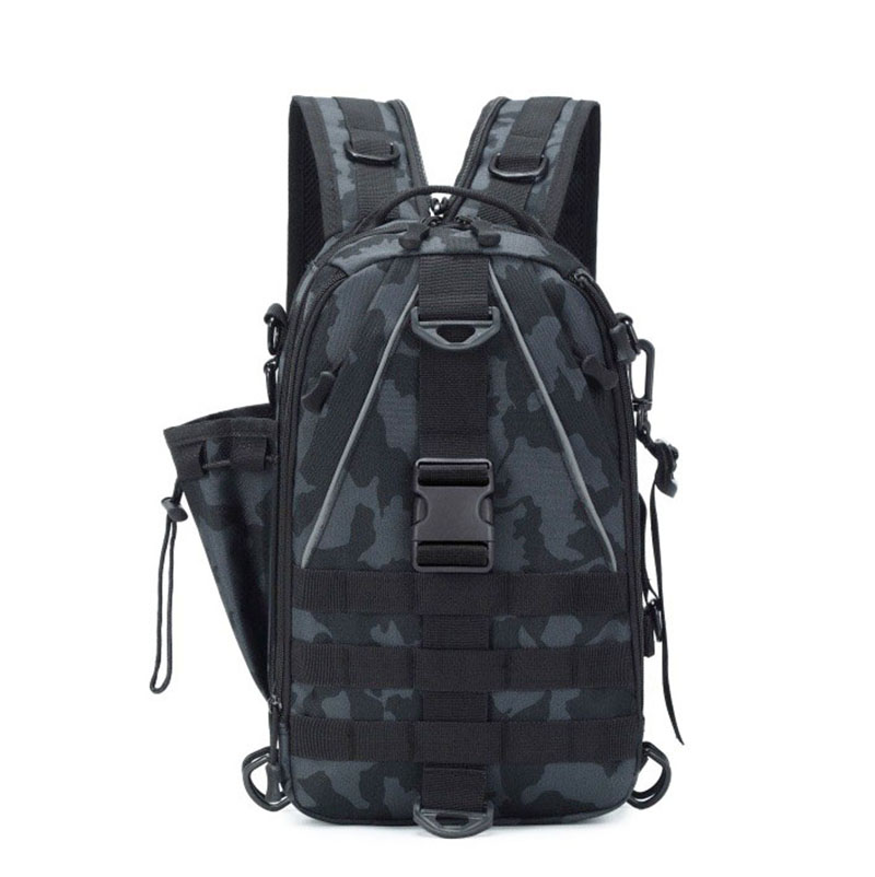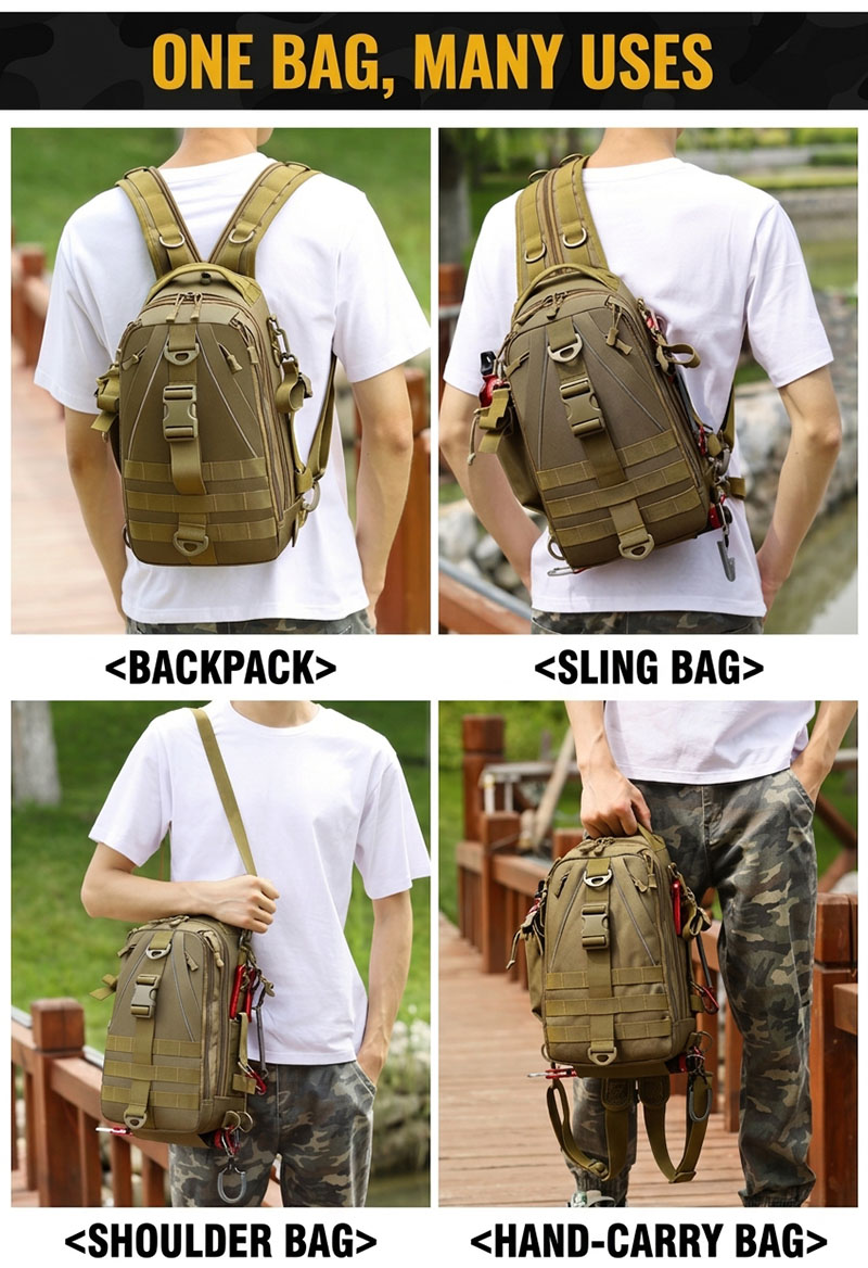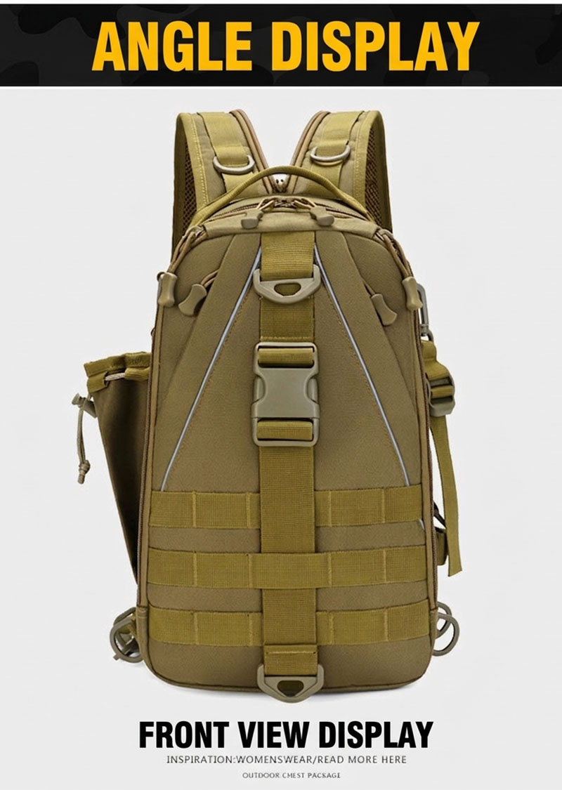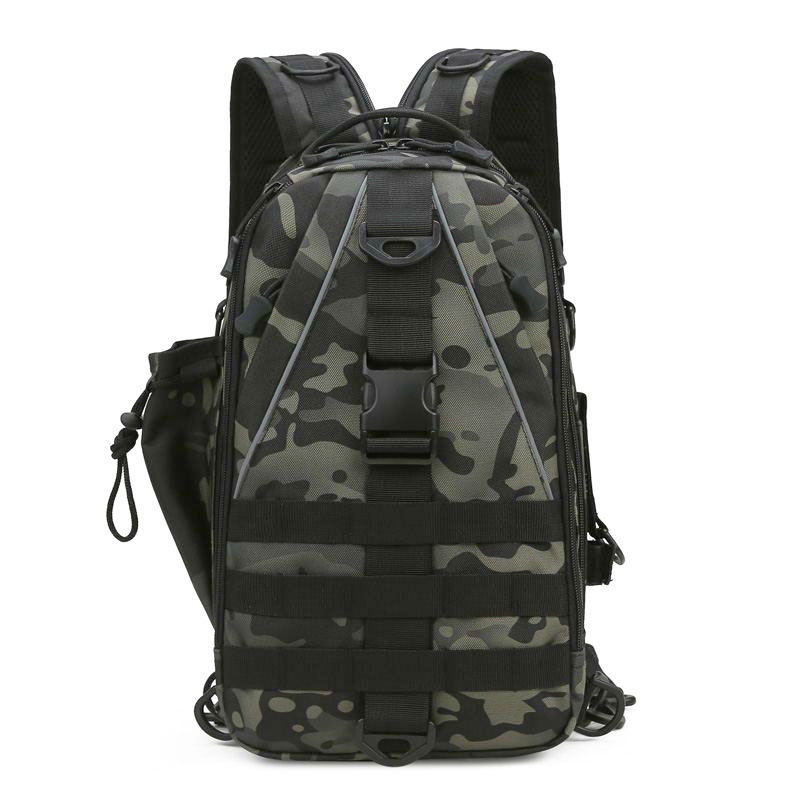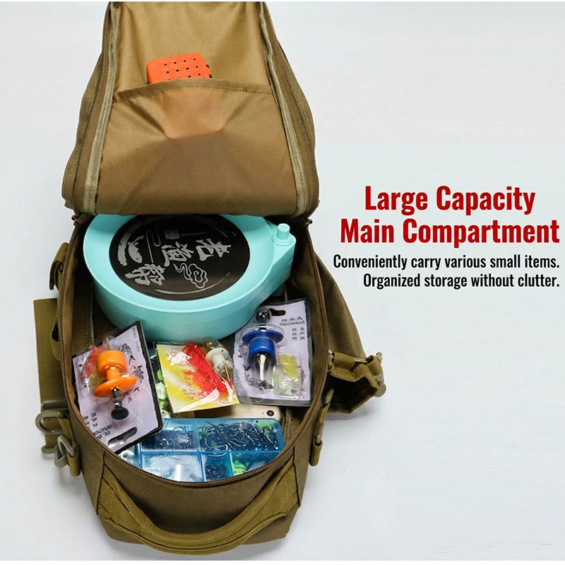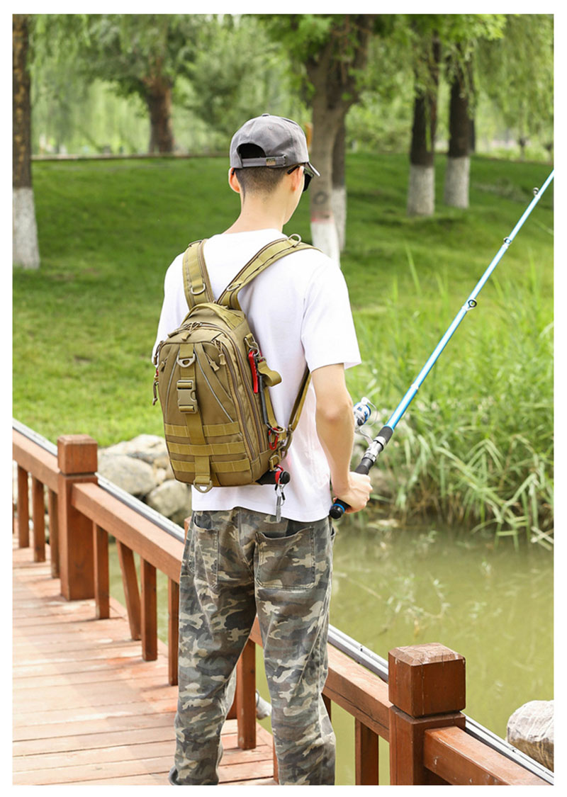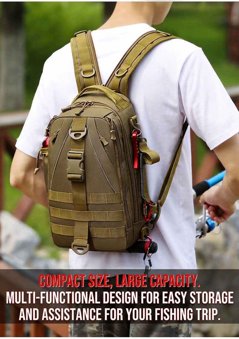 - Compact tactical fishing sling backpack with multi-pocket storage