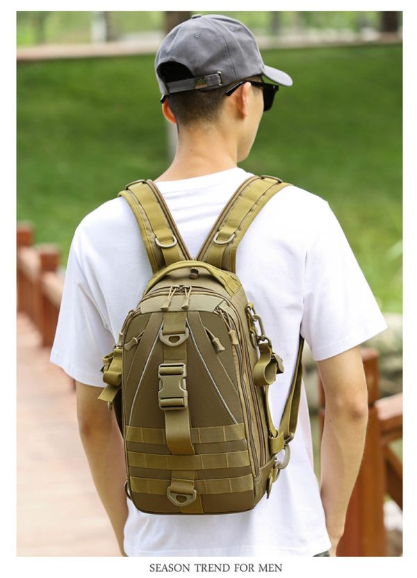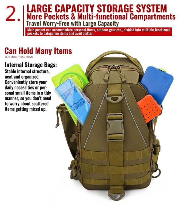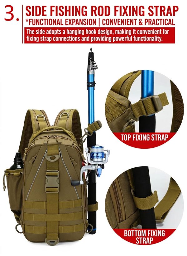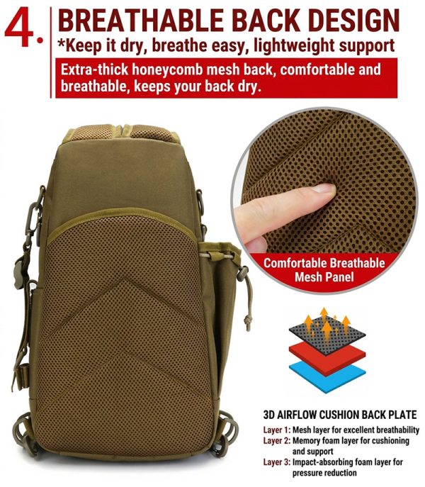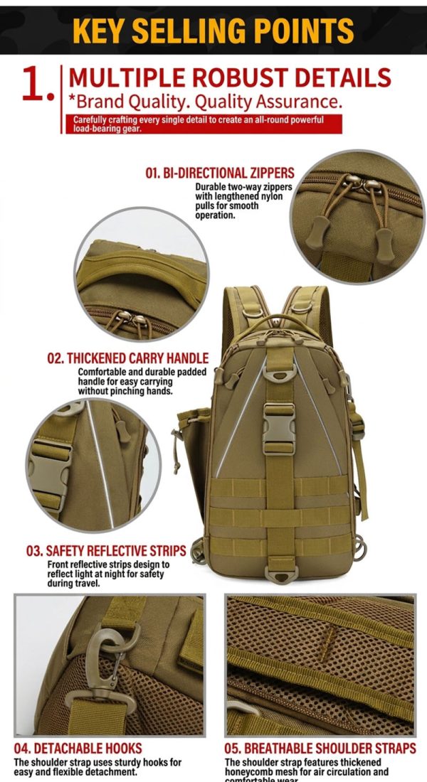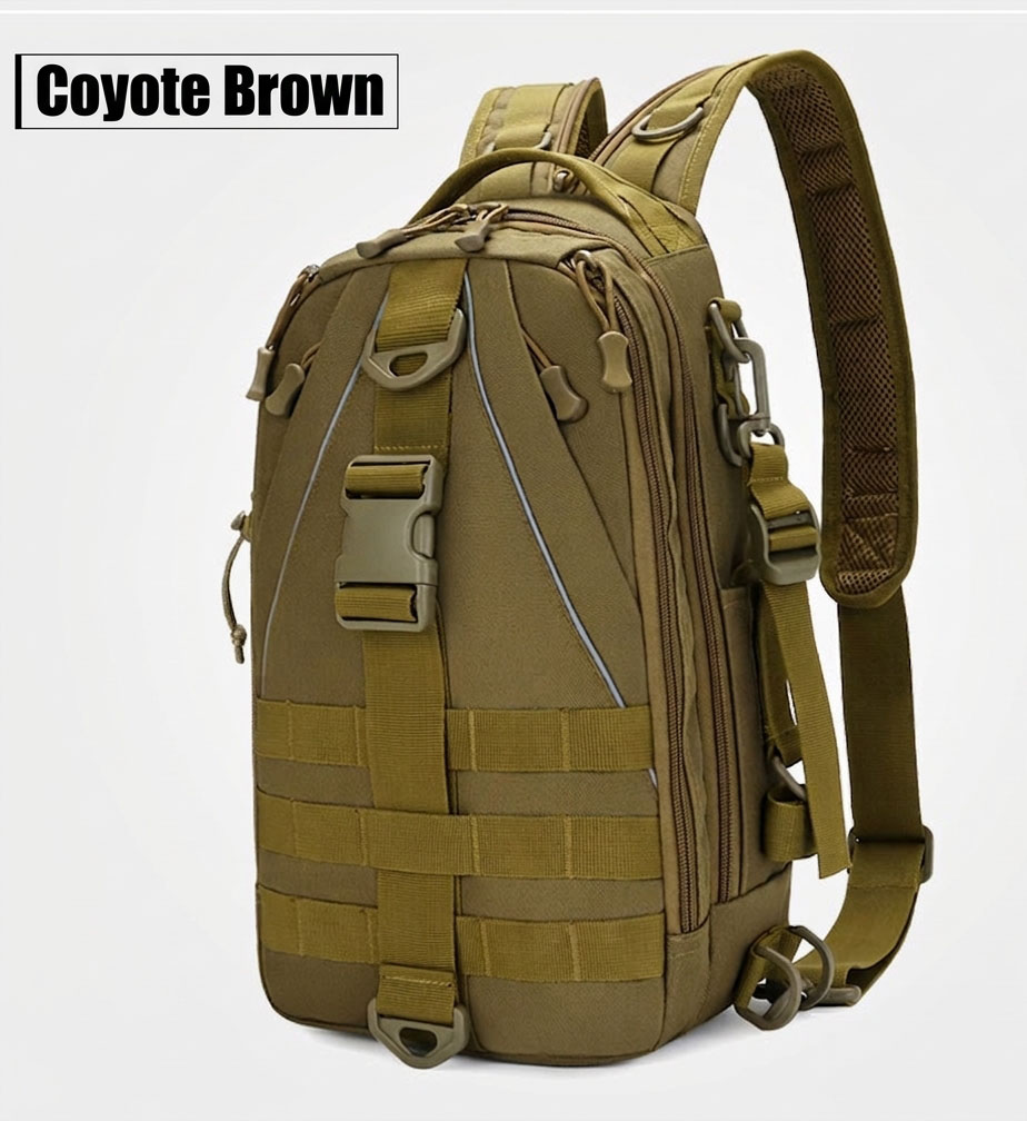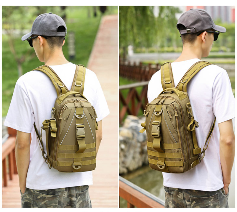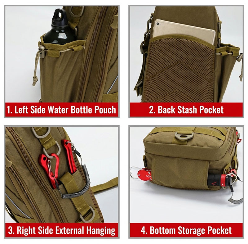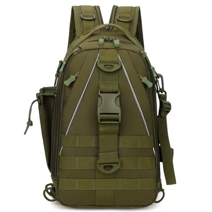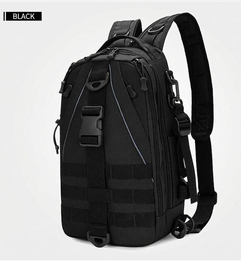 - Compact tactical fishing sling backpack with multi-pocket storage