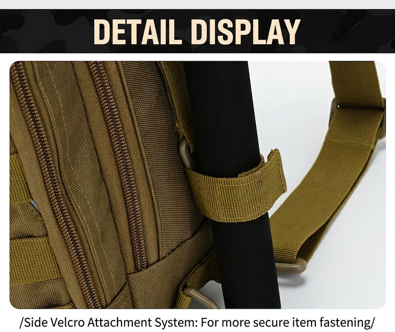 Balanced Capacity Without Excess Bulk One of the strongest points of this design is that it offers useful storage without becoming heavy-looking or oversized. It gives enough space for the essentials while keeping a compact footprint that feels easier to control on the move. For customers who prefer tactical-inspired gear but do not want a very large pack, this is a balanced and convenient option.