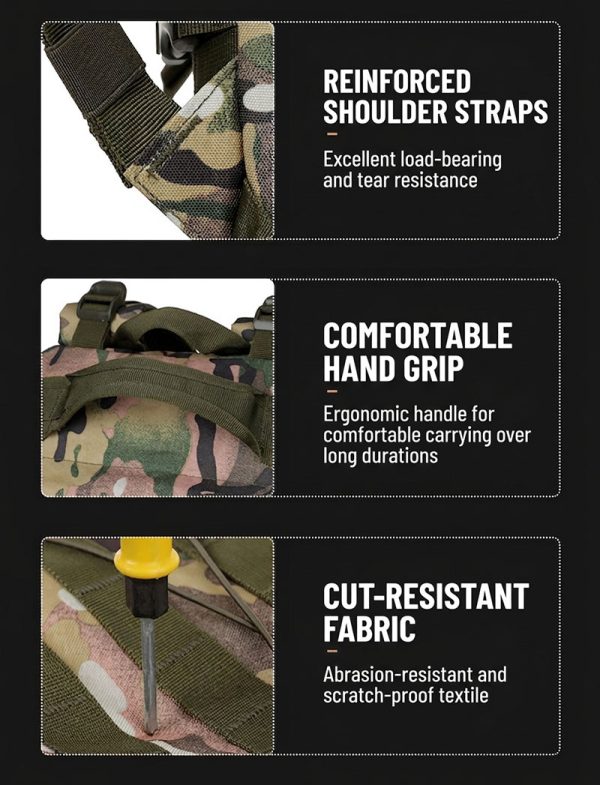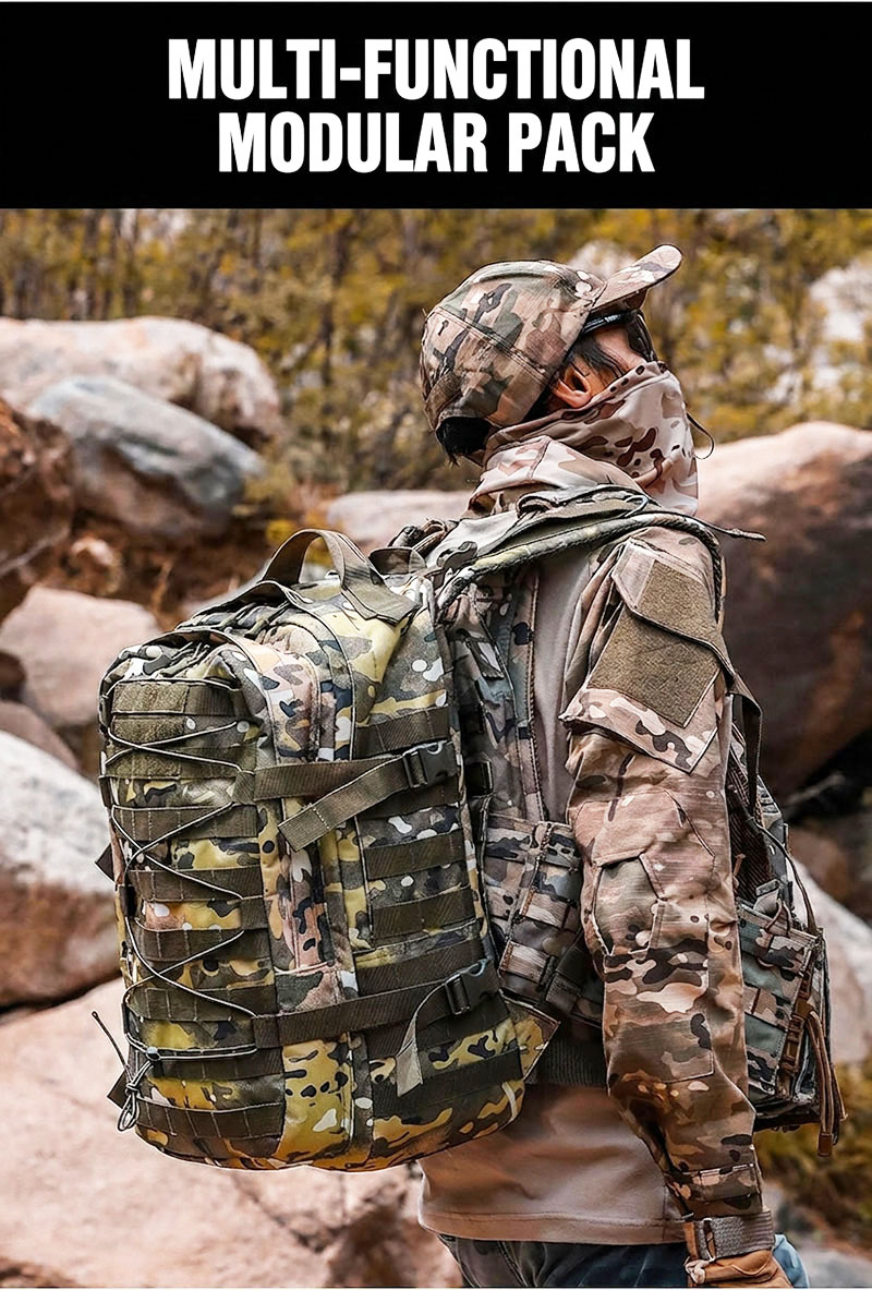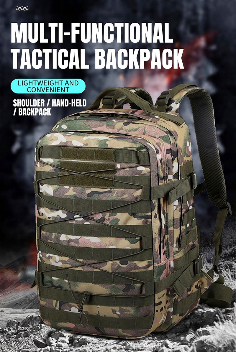 - Tactical camouflage design with strong outdoor appeal