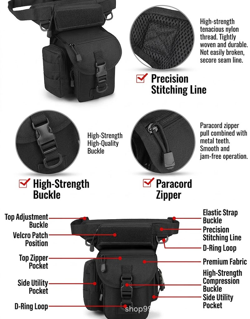 Strong Tactical Drop-Leg Design BG02 is made for customers who want a compact utility bag that stays secure and stable during movement. The drop-leg design combines a waist attachment point with a lower thigh strap, creating a bold tactical look while helping the bag stay closer to the body. At New Way Smile Shop, we understand that customers who choose this style usually want something that feels both distinctive and practical for active use.