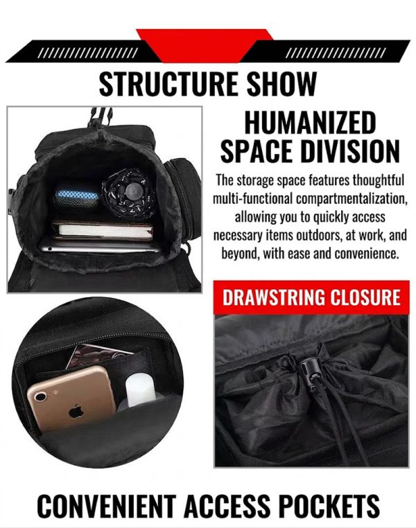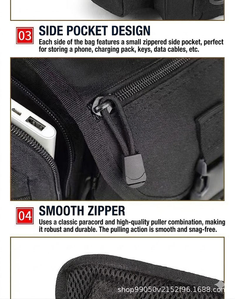 Organized Storage for Tools and Daily Essentials The multi-compartment structure makes BG02 useful for carrying small daily items in a more organized way. Phones, wallets, keys, compact tools, gloves, chargers, and outdoor accessories can be arranged more clearly instead of being packed into one single pocket. This helps improve convenience, especially for customers who want faster access while moving or traveling.