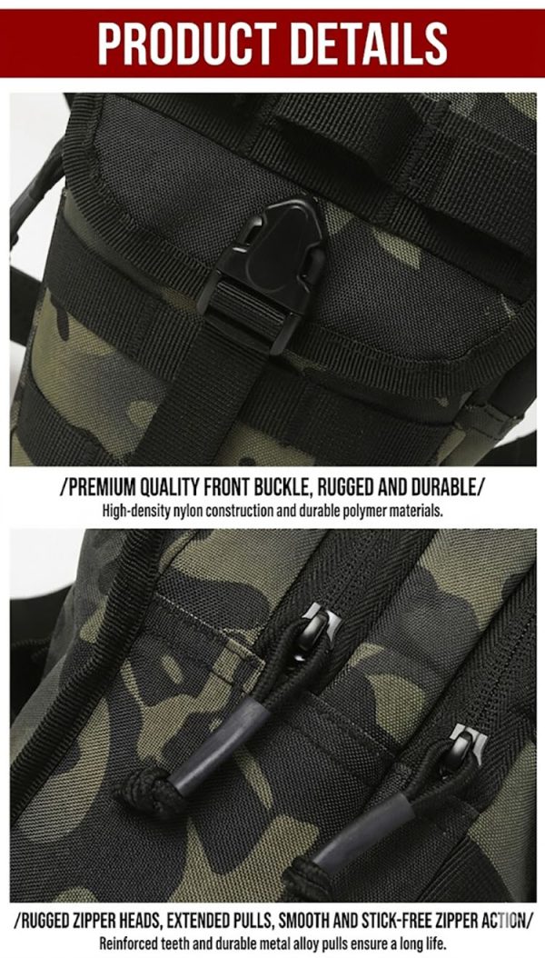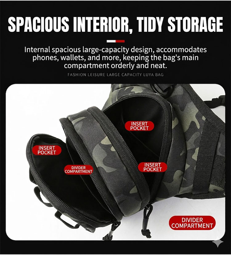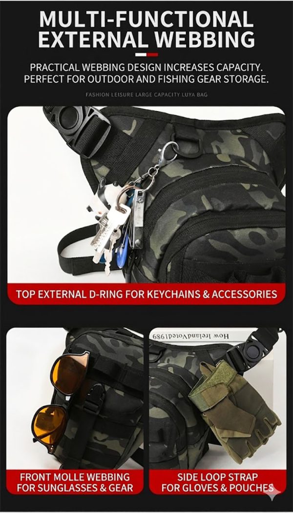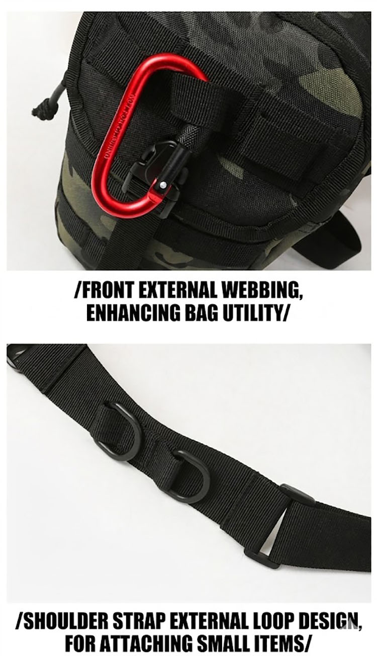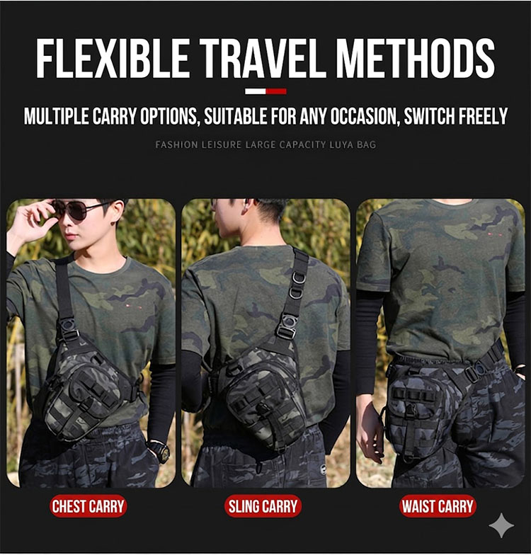 Rugged Utility Style with Everyday Versatility BG06 combines a tactical silhouette with a practical outdoor-ready layout, making it suitable for more than one way of wearing and more than one type of use. It works well for riding, fishing, hiking, travel, and general utility carry, while the rugged hardware and reinforced build details add a stronger tactical character. The overall design feels practical, confident, and easy to match with outdoor clothing, utility fashion, or military-inspired everyday outfits.