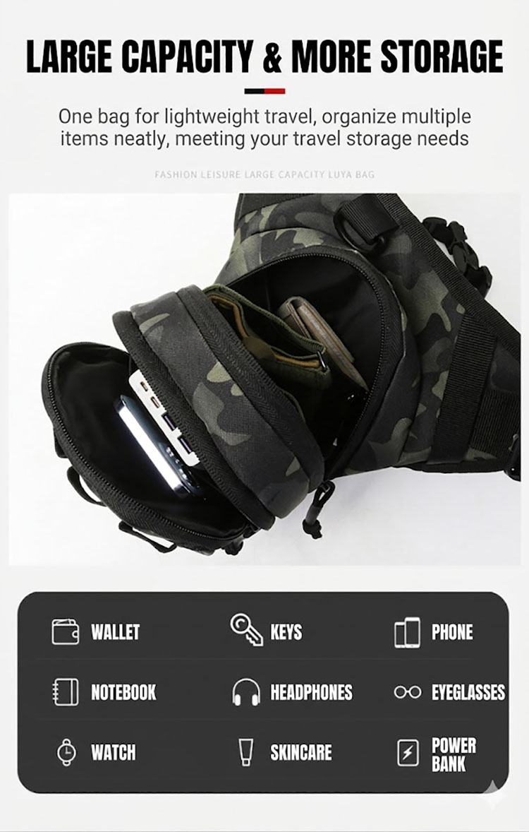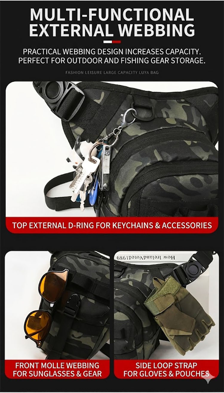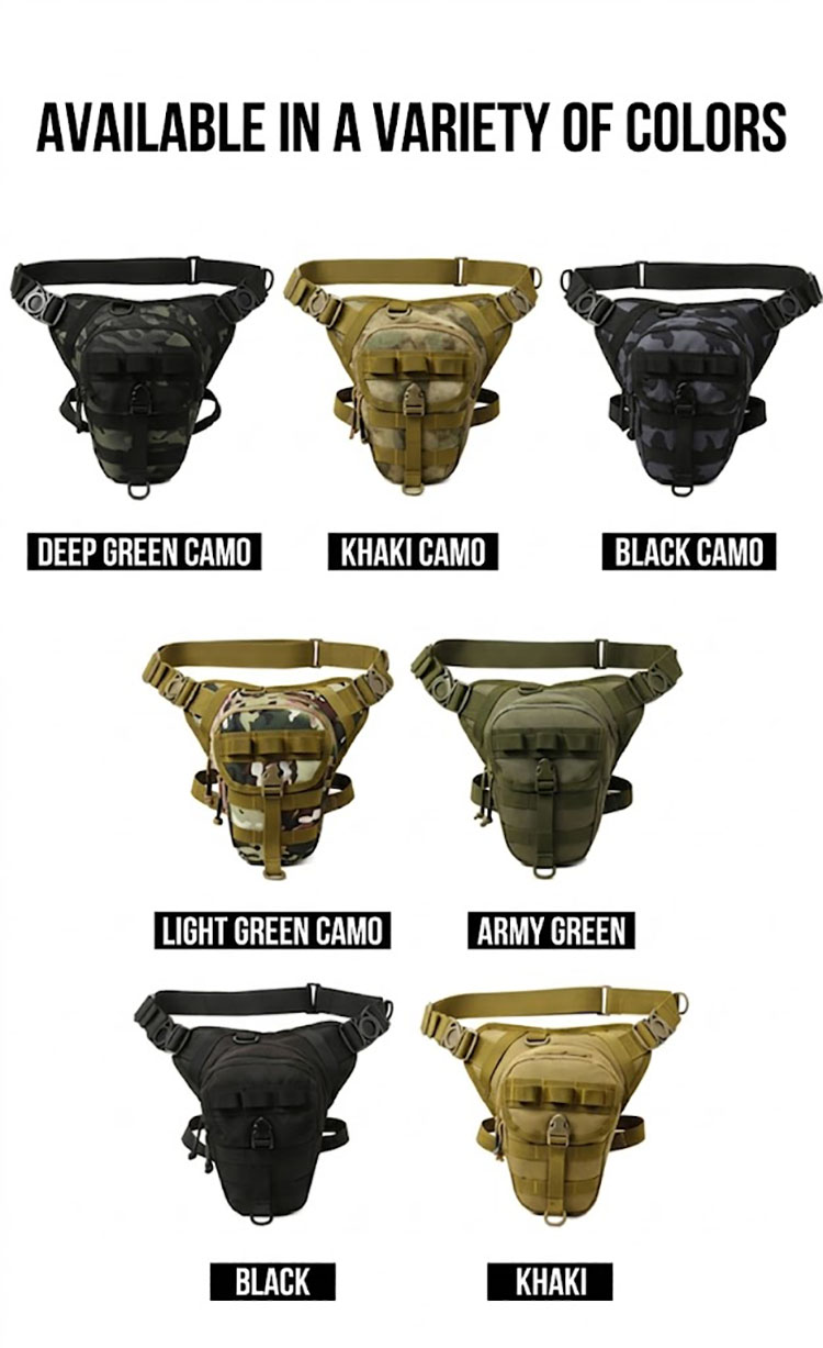 BG06 is a multifunctional tactical waist and leg bag designed for riding, fishing, outdoor movement, and everyday utility carry. With a close-to-body fit, multiple zip compartments, adjustable waist and leg straps, and several camouflage and solid color options, it offers a practical balance of mobility, organization, and rugged tactical styling.