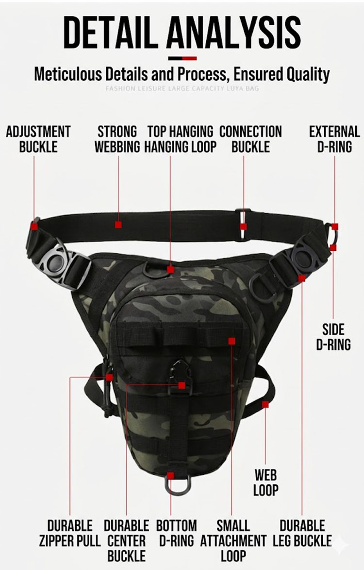 - Multifunctional tactical waist and leg bag design