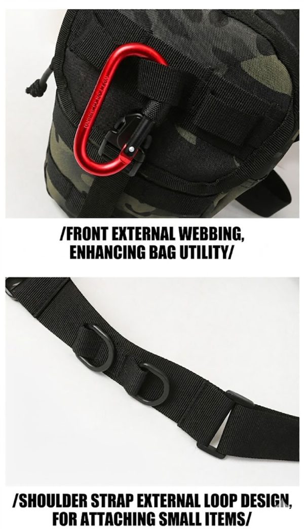I like the compact shape and the extra compartments. It looks tactical without being too bulky, and the strap setup makes it very useful for outdoor trips.