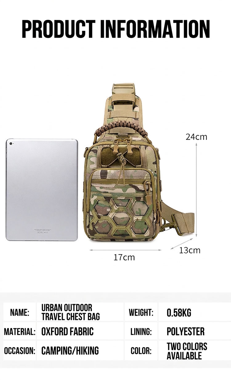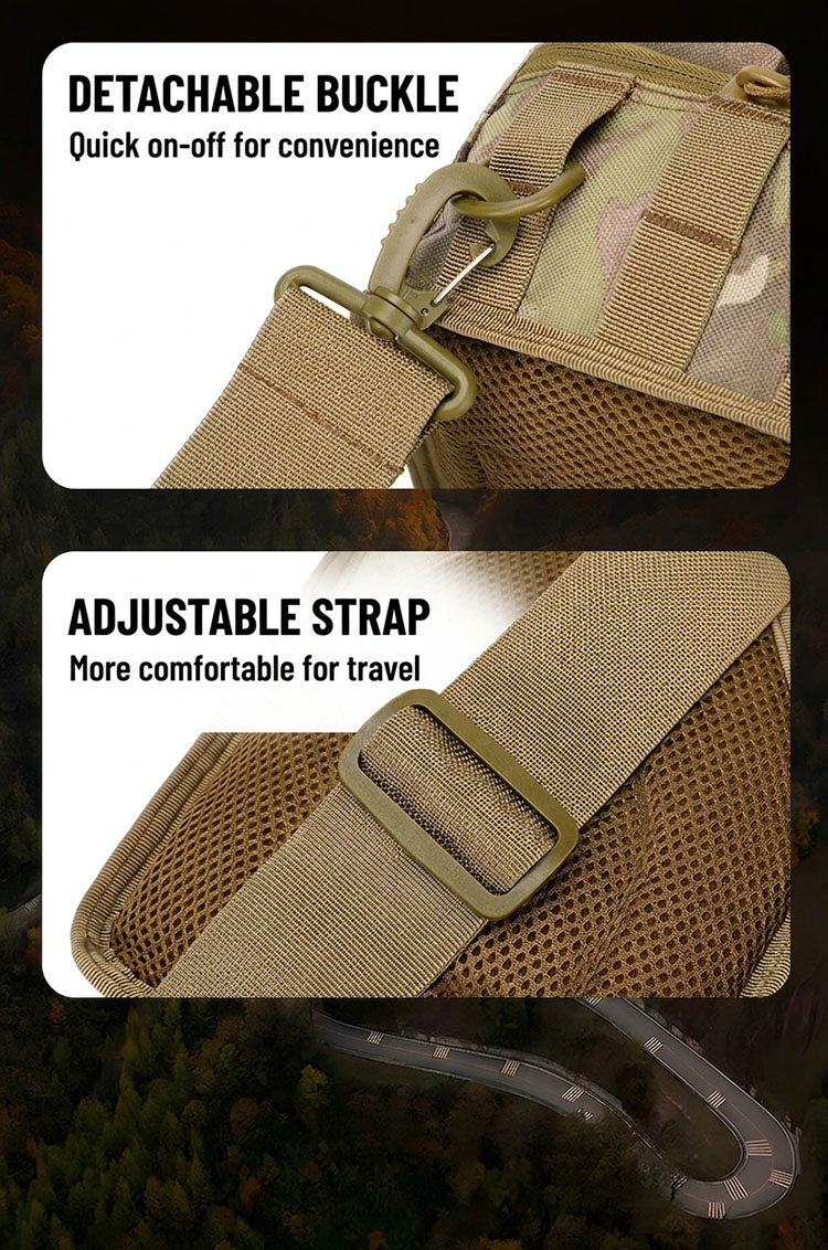 BG10 is a compact tactical sling chest bag designed for travel, outdoor movement, and everyday utility. Its close-to-body single-shoulder design, structured storage layout, and adjustable strap system make it practical for cycling, hiking, commuting, and light gear carry while keeping essentials organized and easy to reach.