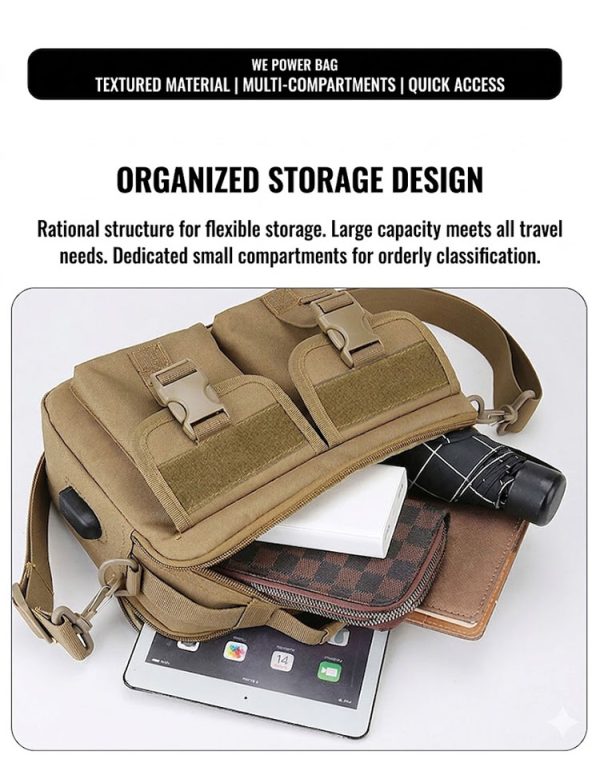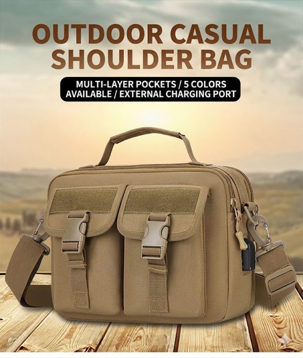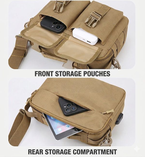 BG16 Tactical Outdoor Shoulder Bag – USB Charging Crossbody Messenger Bag with Multi-Pocket Front Storage