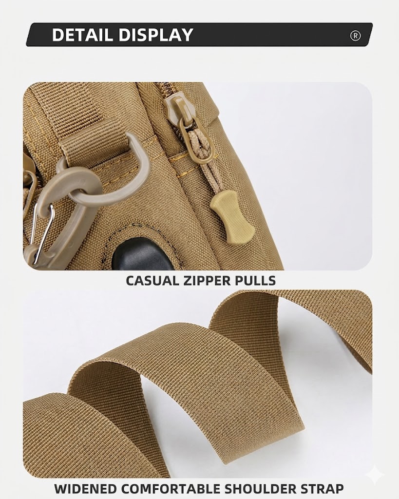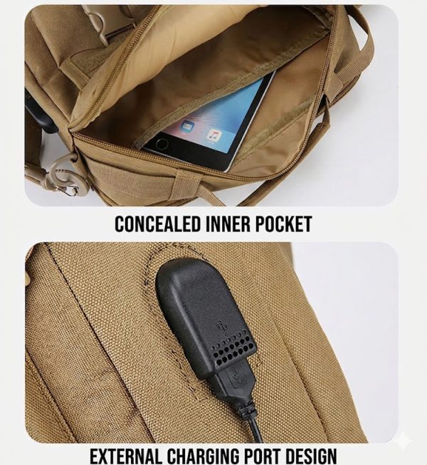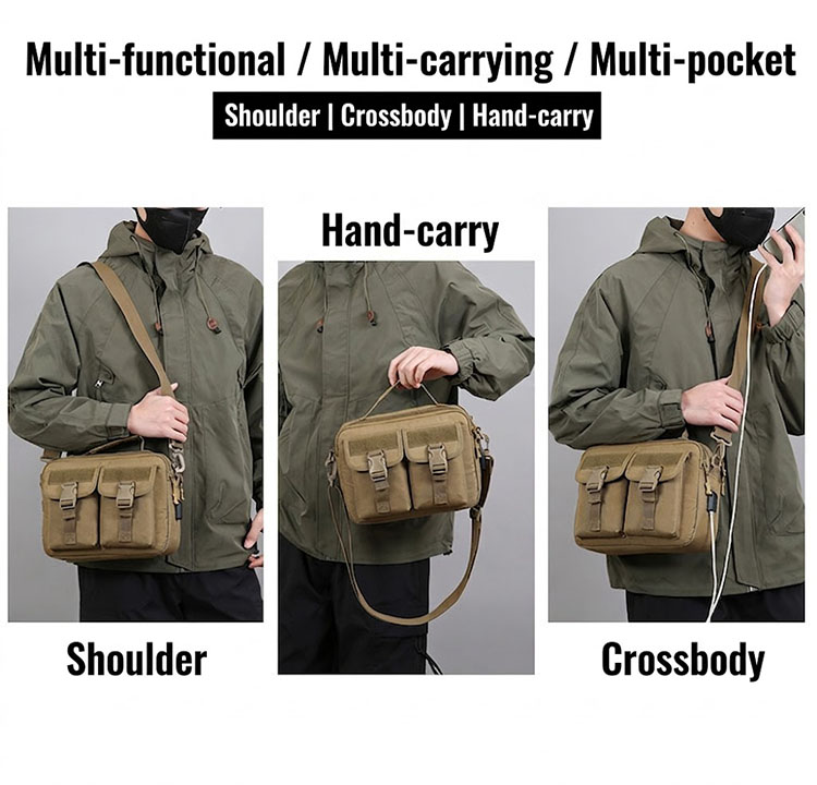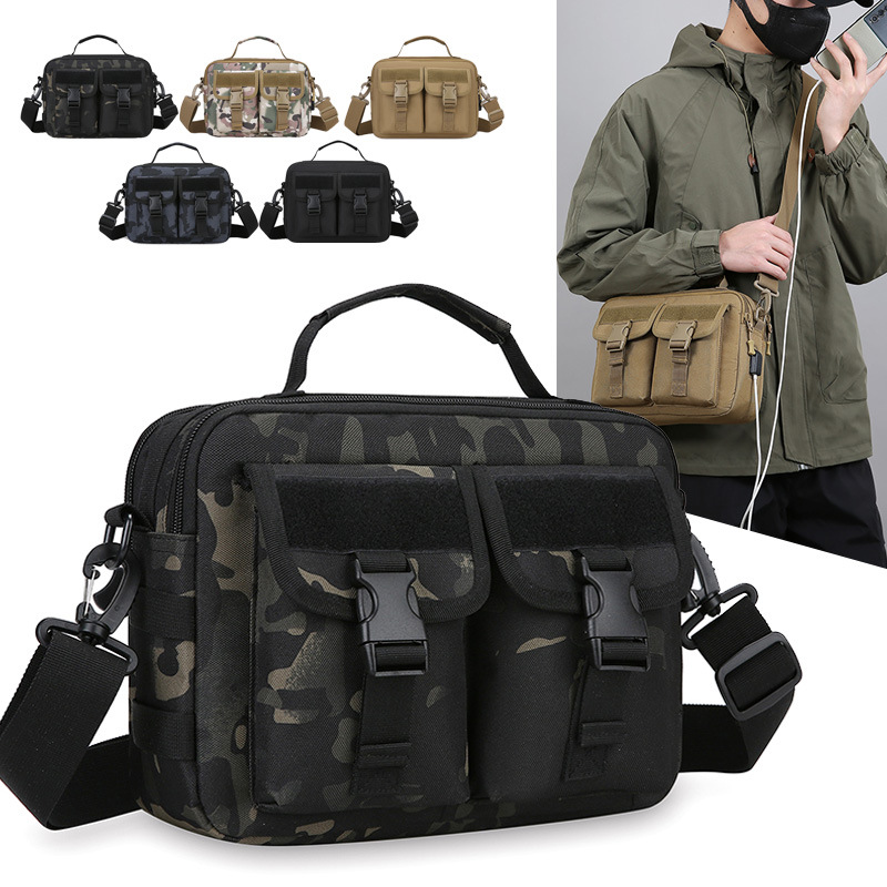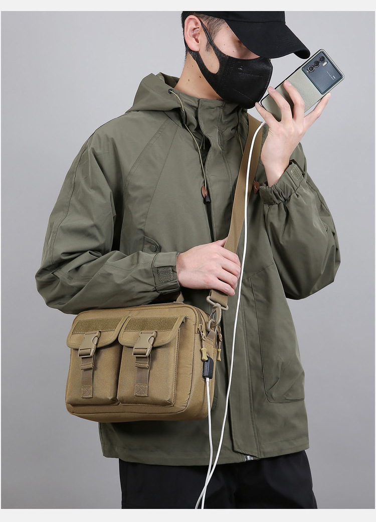 BG16 is a practical tactical shoulder bag designed for outdoor carry, commuting, travel, and everyday use. It combines a compact messenger-style shape with multiple front pockets, an external USB charging port, adjustable shoulder strap, and several tactical-inspired color options, making it a convenient bag for organized daily carry.