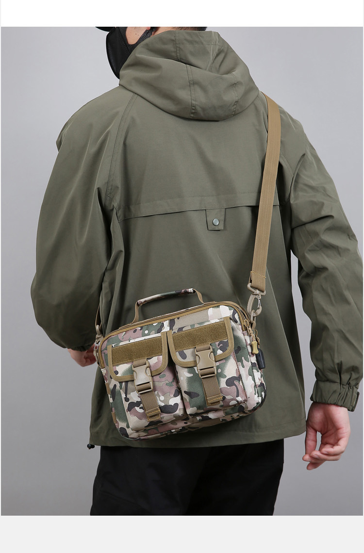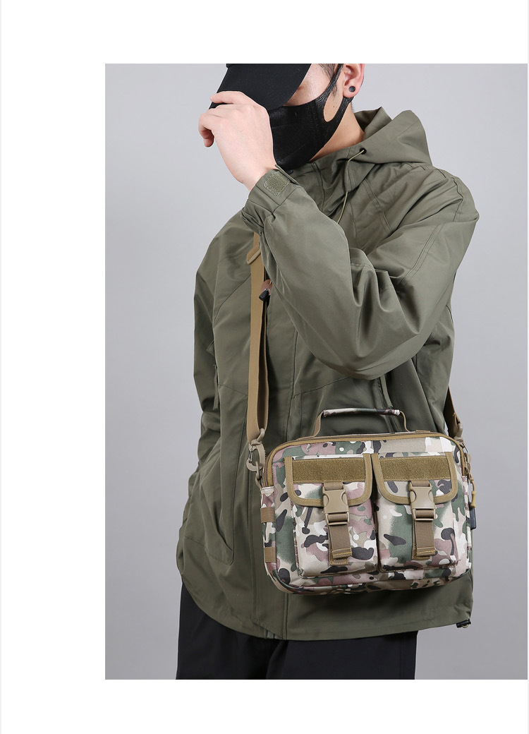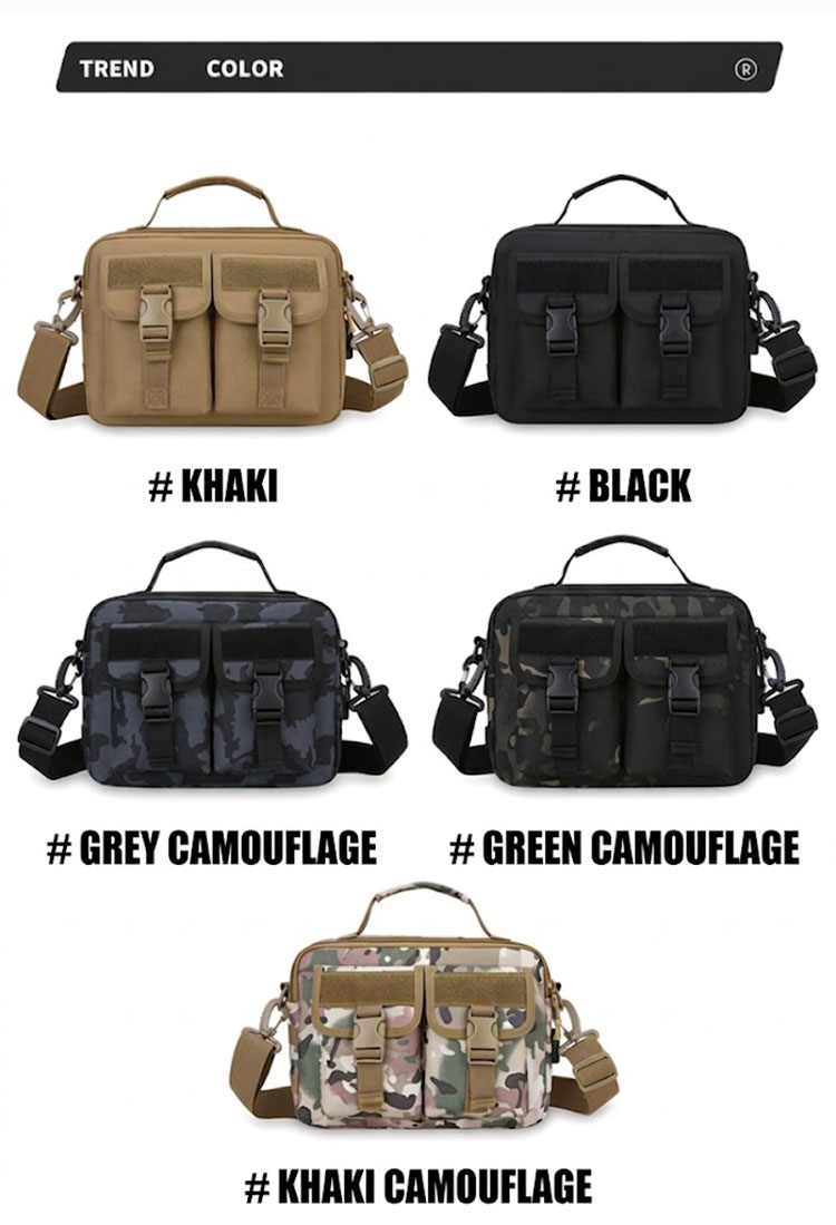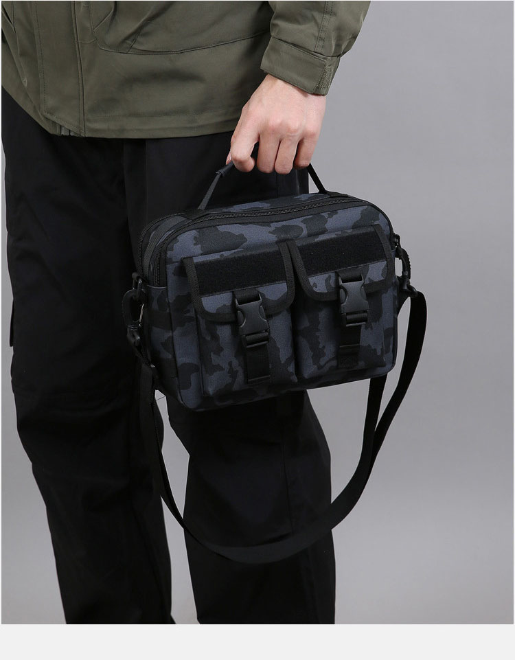 BG16 is a practical tactical shoulder bag designed for outdoor carry, commuting, travel, and everyday use. It combines a compact messenger-style shape with multiple front pockets, an external USB charging port, adjustable shoulder strap, and several tactical-inspired color options, making it a convenient bag for organized daily carry.