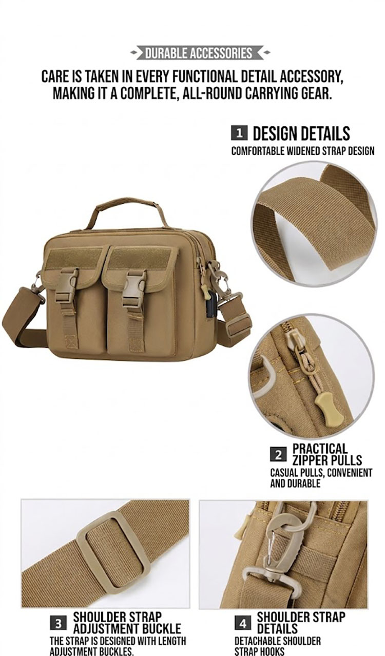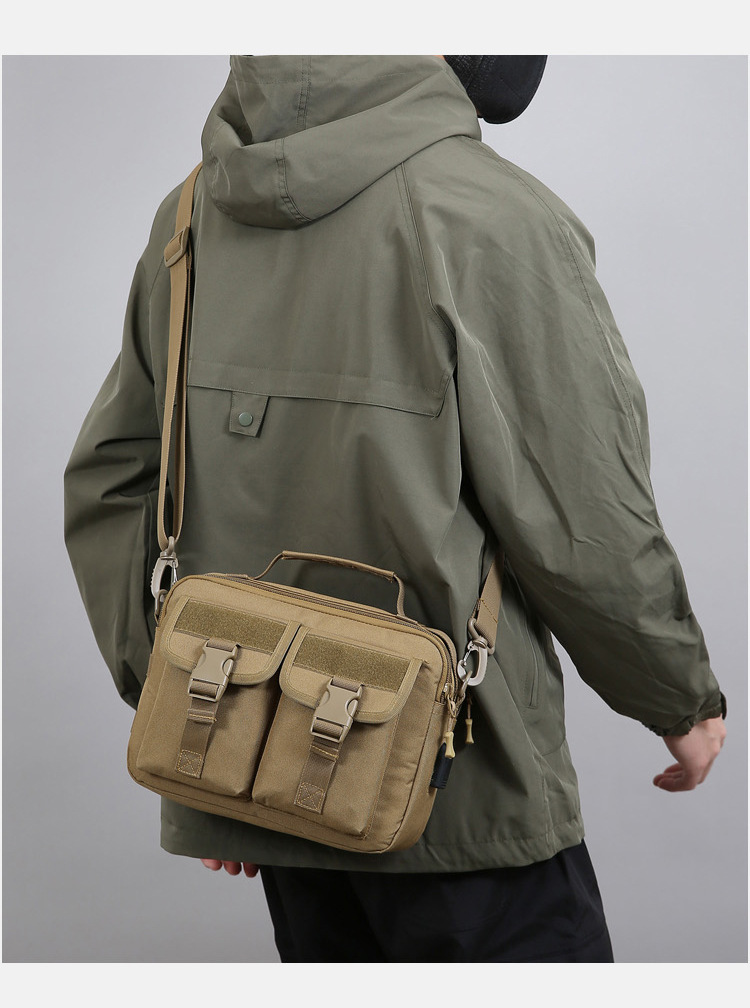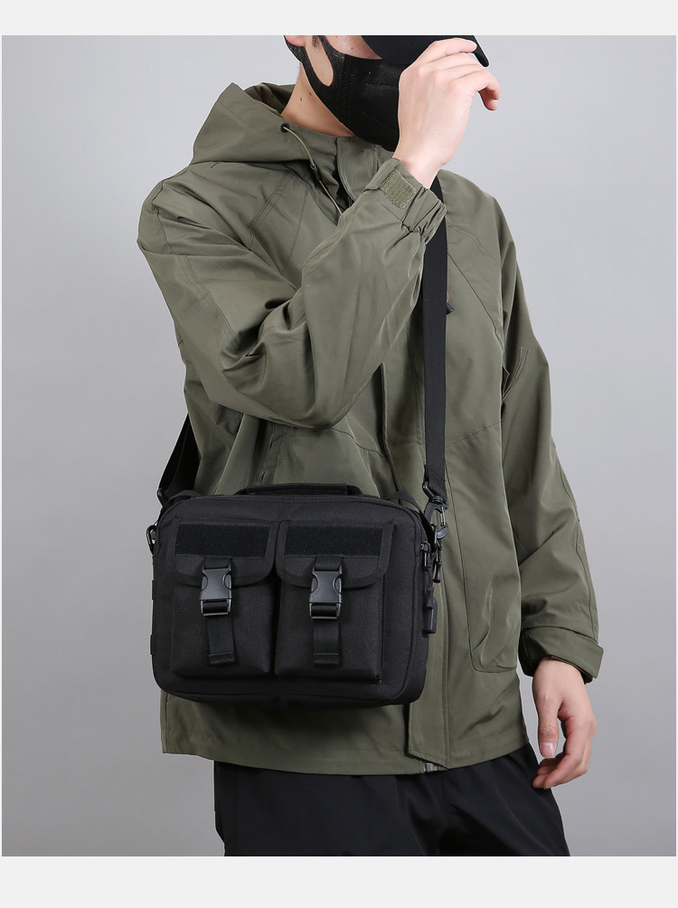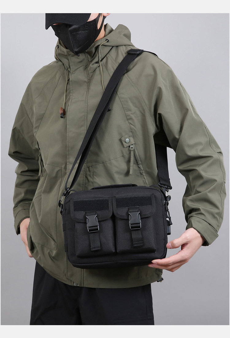 Tactical Utility with a Clean Modern Look BG16 combines tactical-inspired details such as buckle-flap front pockets, visible hook hardware, and a structured utility layout with a cleaner messenger-bag silhouette. This balance makes it easy to match with casual outfits, commuter wear, outdoor clothing, and utility-focused everyday fashion. It is a strong choice for customers who want a bag that feels modern, organized, and visually distinctive without being too aggressive.