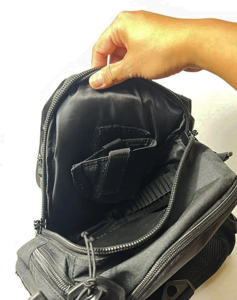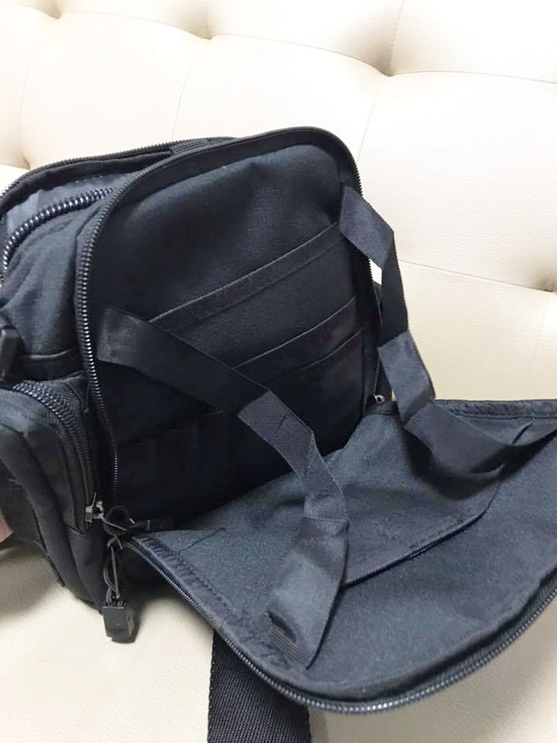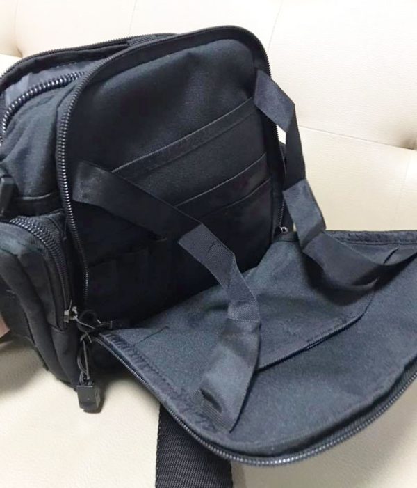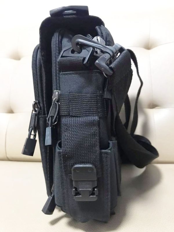 - Compact tactical-style crossbody shoulder bag