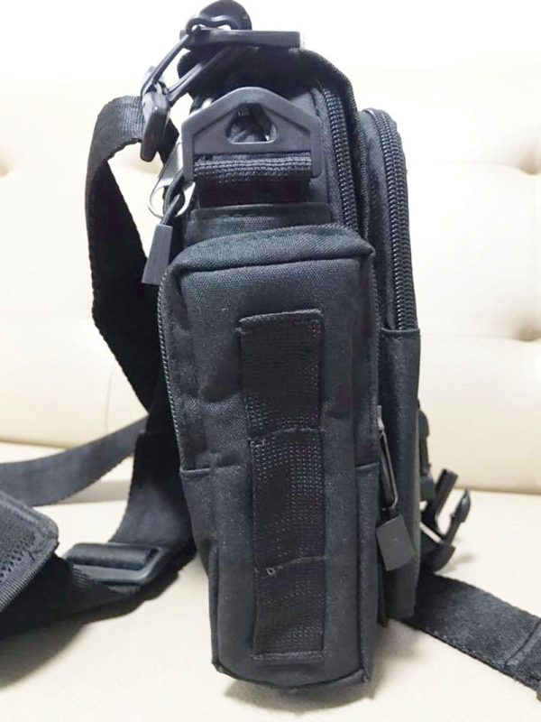A compact tactical-style shoulder bag designed for daily carry, short trips, and hands-free outdoor use. With multiple zip compartments, a secure front buckle flap, side utility storage, and an adjustable shoulder strap, this bag keeps essentials organized while maintaining a clean, rugged look suitable for everyday use in Cambodia.