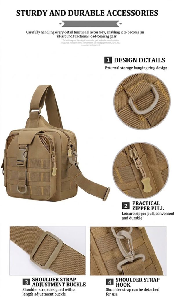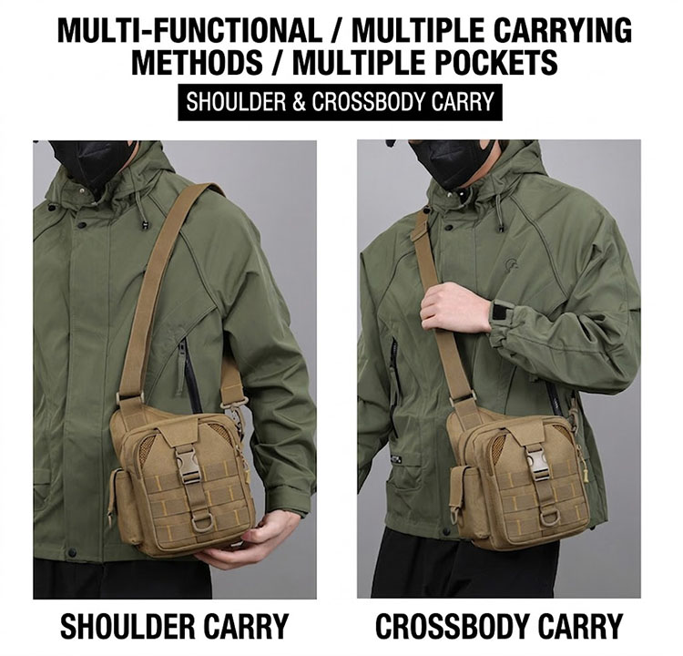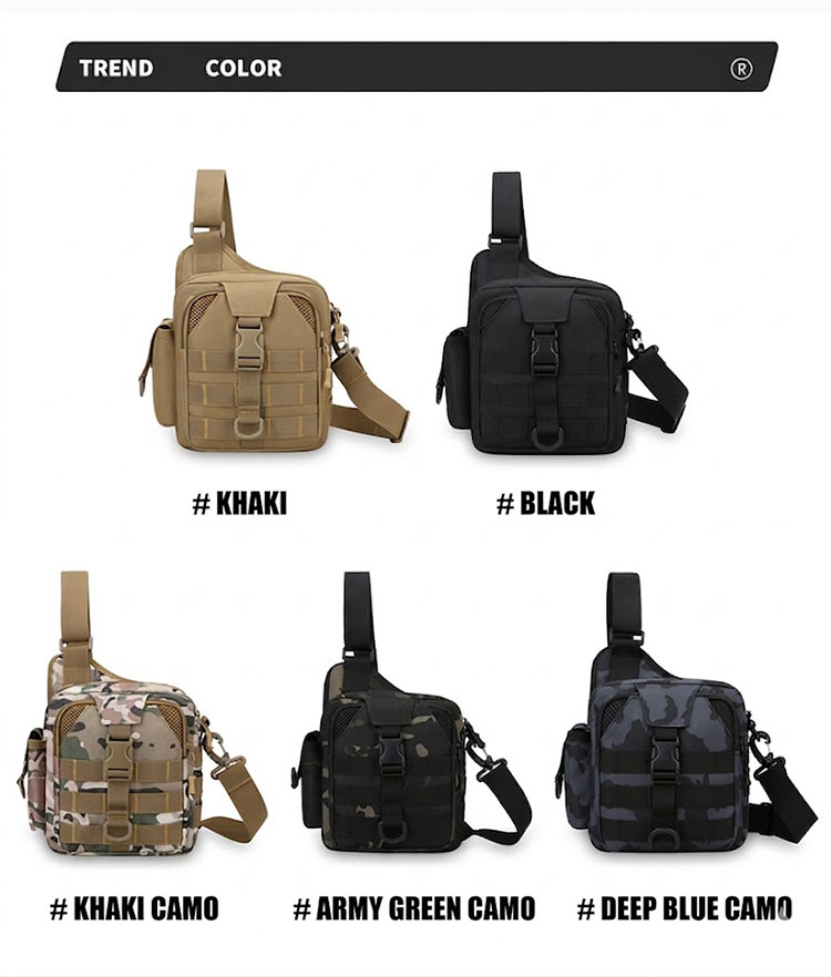 BG30 is a lightweight camouflage crossbody shoulder bag designed for outdoor leisure, cycling, commuting, and everyday carry. With its slim profile, multi-pocket layout, and sporty tactical-inspired styling, it offers practical storage in a compact format that is easy to wear throughout the day.