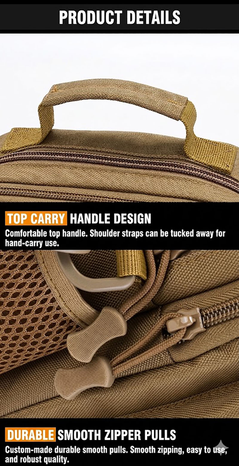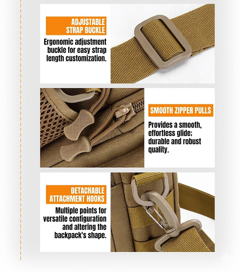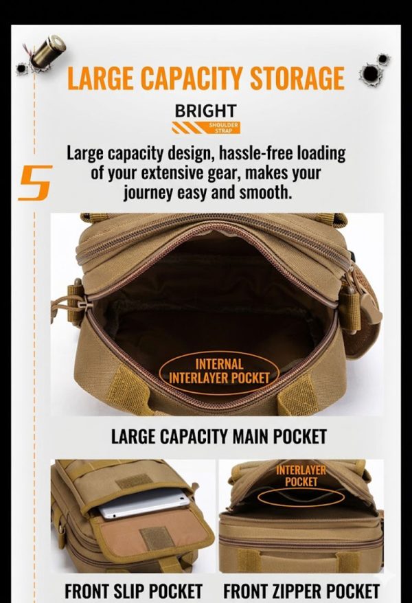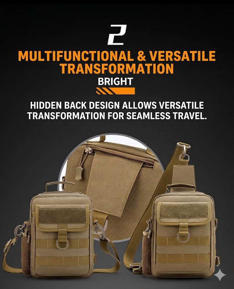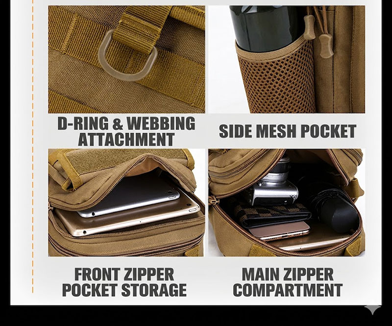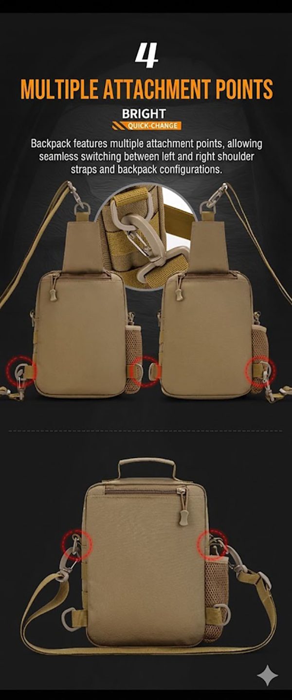 This bag has a clean tactical look without feeling too bulky. The storage layout is simple, practical, and works well for commuting or short outdoor trips.