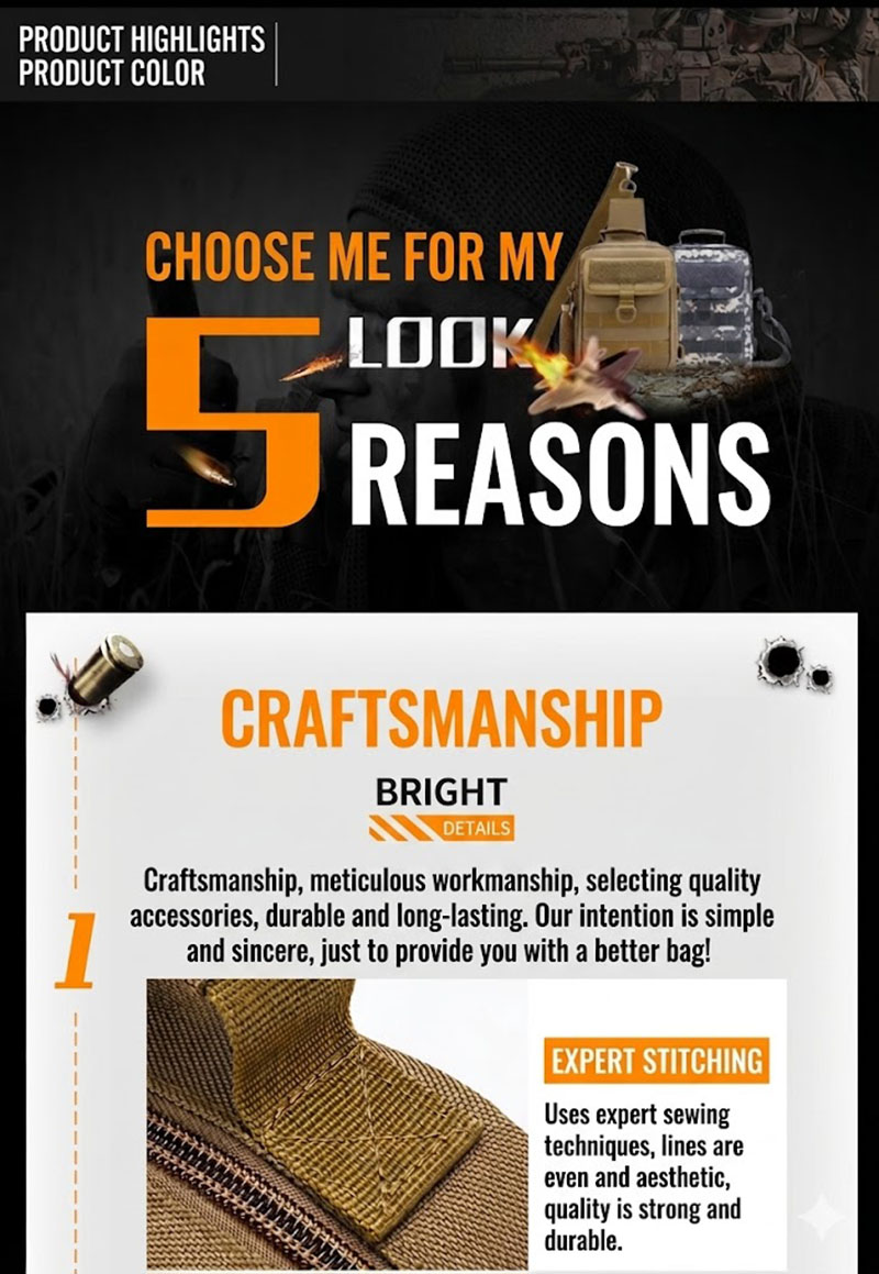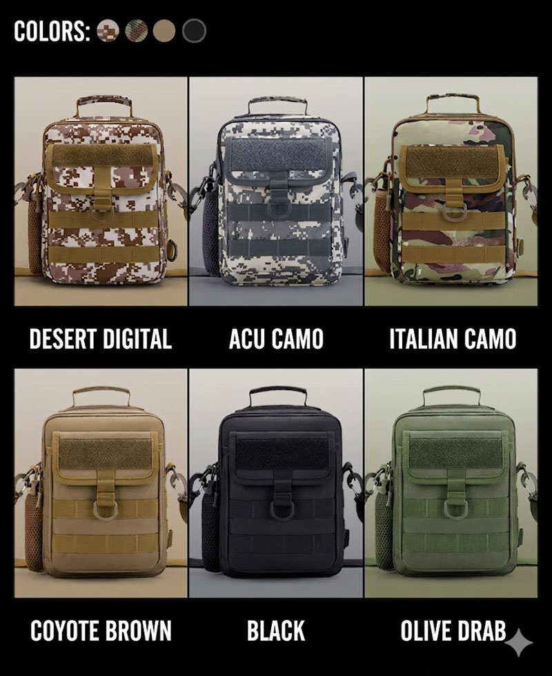 Tactical Style with Versatile Color Options BG31 is available in black, olive drab, coyote brown, desert digital, ACU camo, and Italian camo, giving customers more freedom to choose between a clean everyday look and a stronger outdoor or tactical style. Its compact body, organized storage, and flexible carry options make it a practical everyday choice for customers who want comfort, function, and stronger visual character. At New Way Smile Shop, we always hope to offer products that fit real daily life in Cambodia while still delivering dependable value and modern tactical appeal.