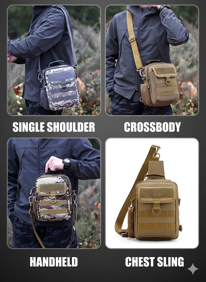 - Multiple carry options: shoulder, crossbody, chest sling, or handheld