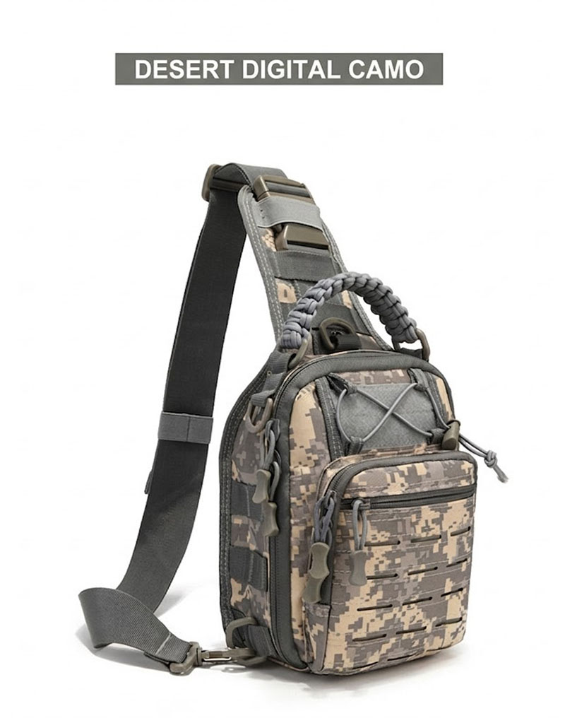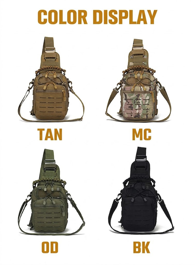 BG34 is a compact one-shoulder tactical chest bag designed for outdoor carry, commuting, cycling, and everyday essentials. With a structured front panel, multiple zippered compartments, MOLLE-style detailing, and a comfortable single-strap setup, it delivers a practical balance of tactical styling and lightweight utility.