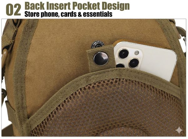 Supportive Fit with Practical Everyday Use The single-strap setup and padded rear section help the bag feel more supportive during movement. The back insert pocket also adds useful space for slim daily essentials, helping customers keep important small items closer and more organized. This makes BG34 a strong choice for people who want a compact chest bag that stays comfortable while walking, cycling, or traveling.