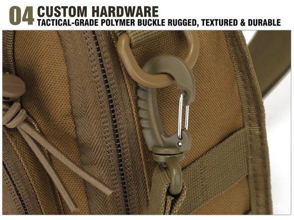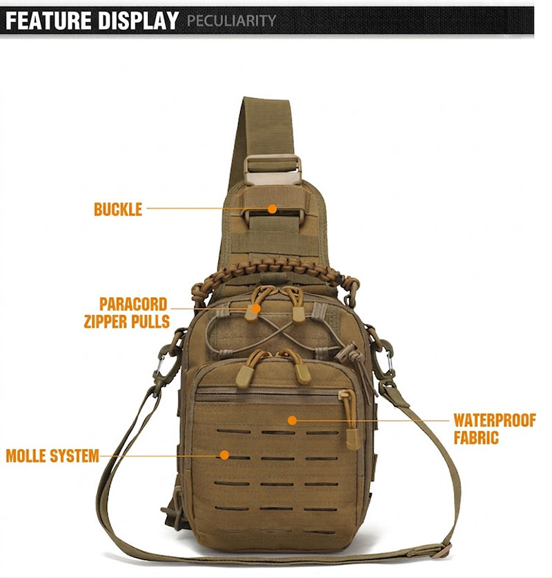 I like the tactical look and the front panel detail. The zipper pulls and hardware make it feel more premium than a basic casual sling bag.