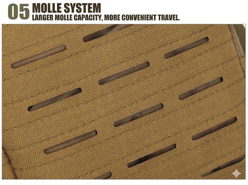 Tactical Front Panel with Utility Appeal The laser-cut MOLLE-style front panel gives BG34 a stronger tactical identity while keeping the overall look clean and structured. Combined with the rugged zipper pulls and reinforced hardware details, the bag feels more utility-focused and visually distinctive. New Way Smile Shop always aims to offer products that not only look good, but also feel more useful in real everyday situations.