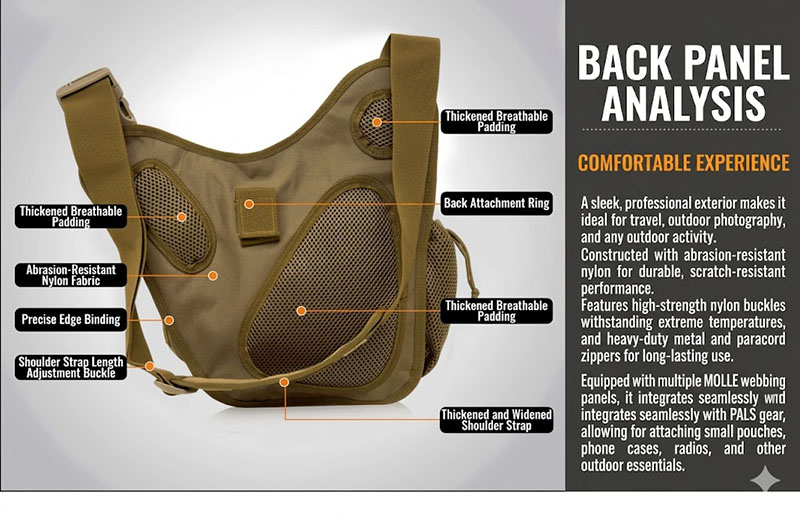 Roomier Storage for Better Organization BG35 offers a larger-capacity layout that makes it easier to organize daily essentials, travel items, and utility gear in a cleaner and more convenient way. Phones, wallets, keys, chargers, small accessories, documents, and compact equipment can be arranged more neatly, helping customers access what they need without feeling crowded inside the bag. This makes it especially useful for customers who need more room but still want a shoulder bag instead of a full backpack.