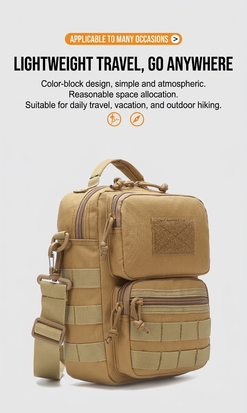 Clean Tactical Look with Outdoor Versatility BG37 combines a simple structured body with practical pocket organization and tactical webbing details, giving it a stronger outdoor-ready identity while still keeping the overall look clean and easy to wear. This makes it suitable for casual clothing, travel outfits, commuter styling, and tactical-inspired everyday fashion. It is a strong option for customers who want a compact bag that feels useful without looking oversized.