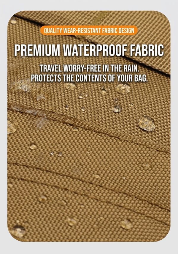 I like the tactical look and the water-resistant style fabric. It works well for short trips, commuting, and casual outdoor use.