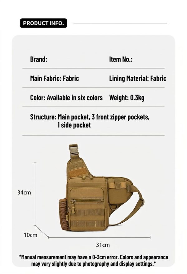 - Large-capacity tactical chest bag format