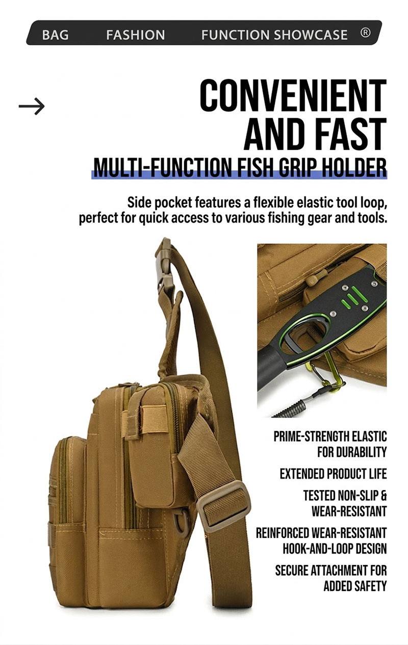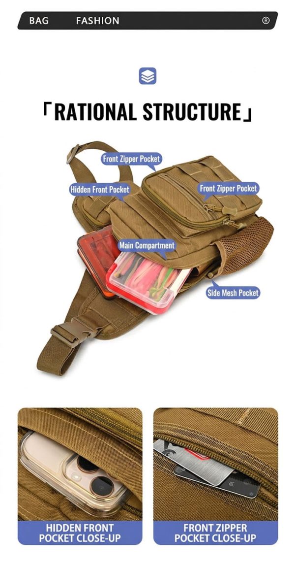 BG38 is a lightweight tactical chest bag built for practical daily carry, cycling, hiking, lure fishing, and casual outdoor use. Its large-capacity sling format, multiple zip compartments, and streamlined crossbody design make it a versatile choice for users who want organized storage without the bulk of a full backpack.