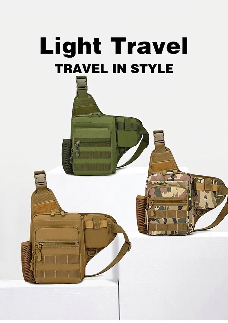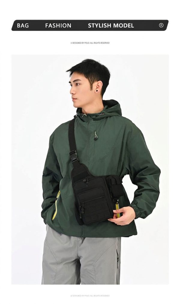 Outdoor Utility with Casual Everyday Versatility BG38 works well for cycling, hiking, fishing, travel, and regular daily carry. Its tactical-inspired design gives it a stronger outdoor character, while the clean chest-bag silhouette still feels wearable with casual outfits, utility fashion, and commuter-style clothing. This balance makes it suitable for customers who want a bag that feels both functional and visually distinctive.