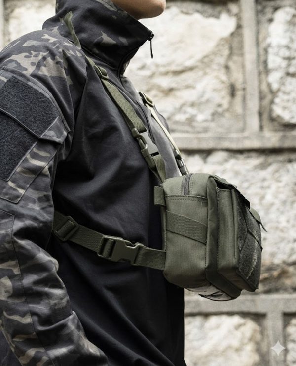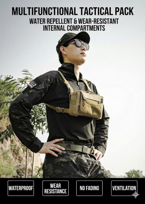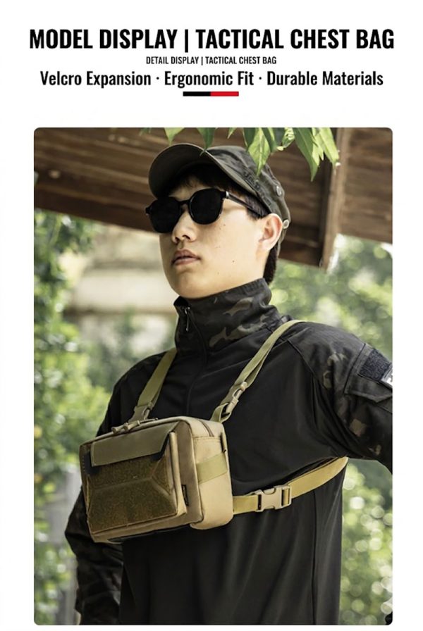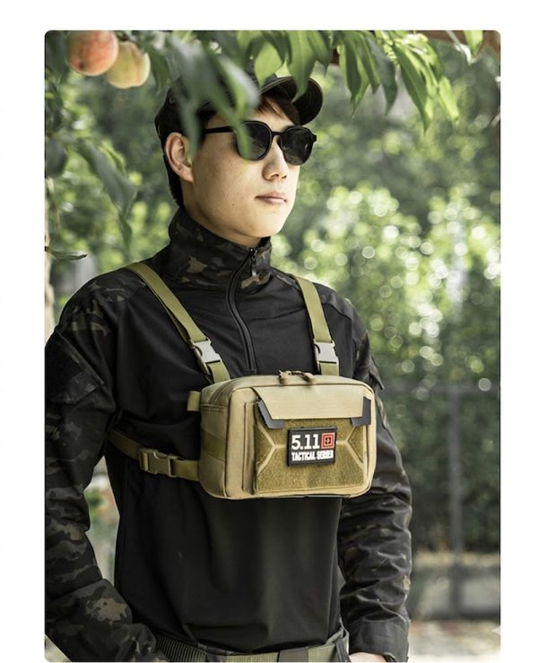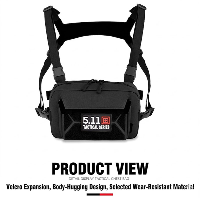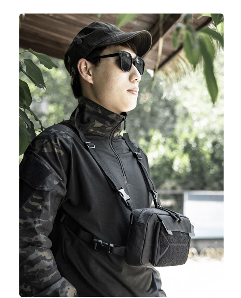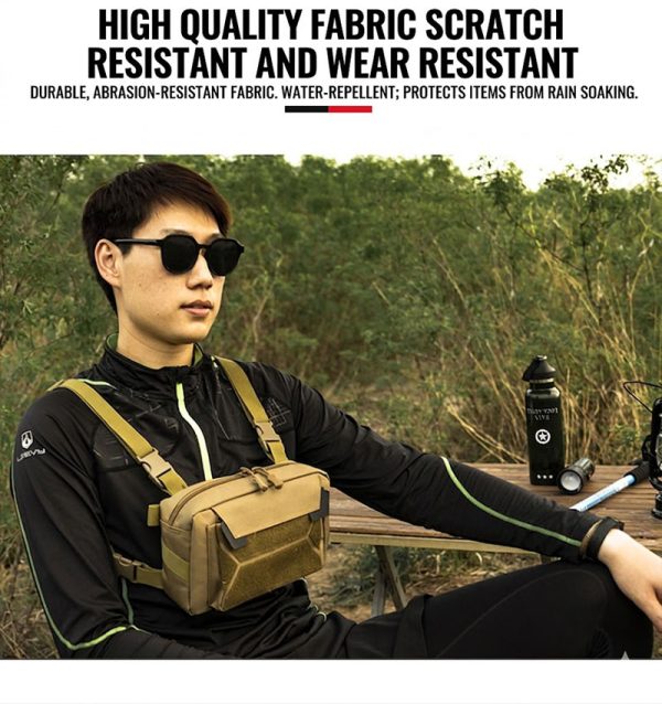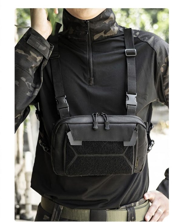 - Vest-style tactical chest bag with a secure body-hugging fit