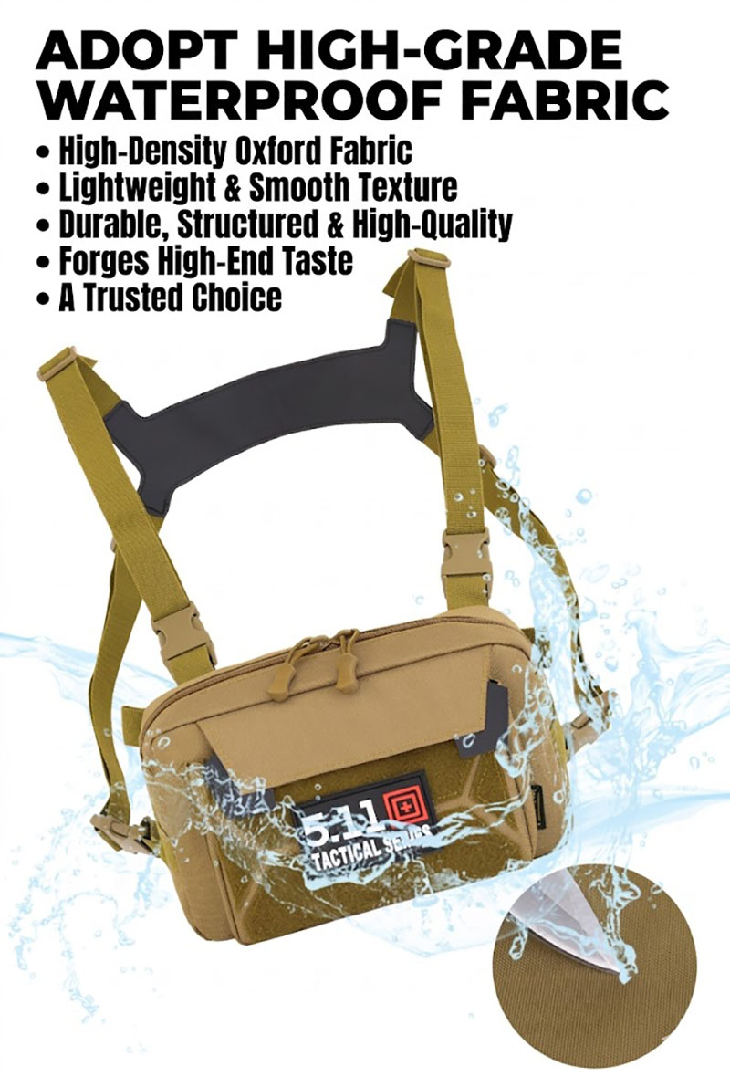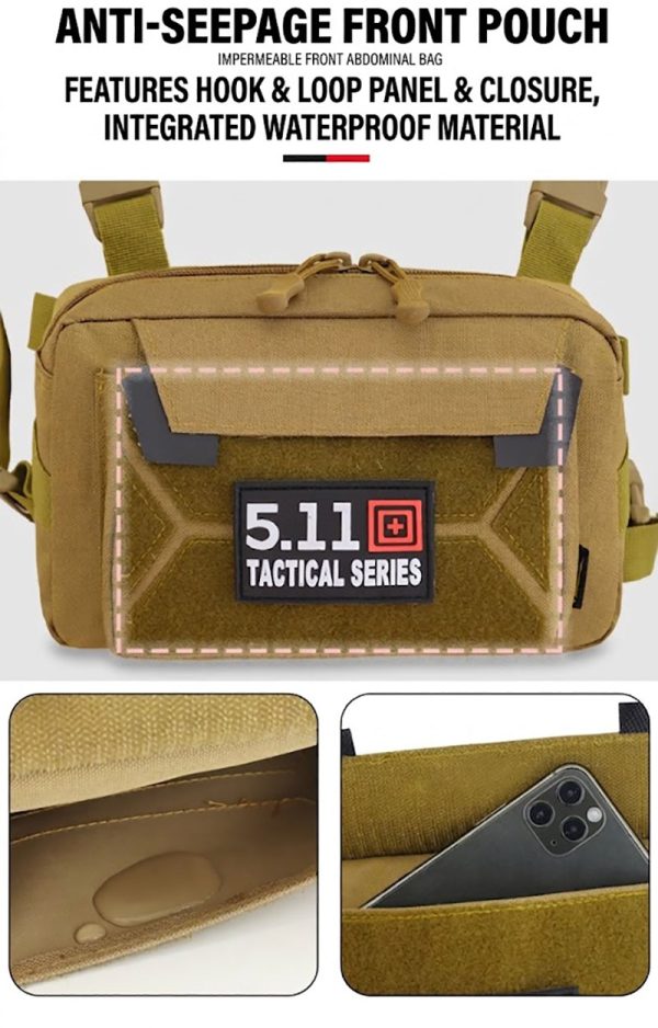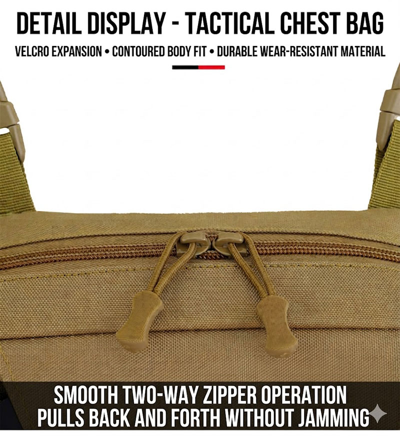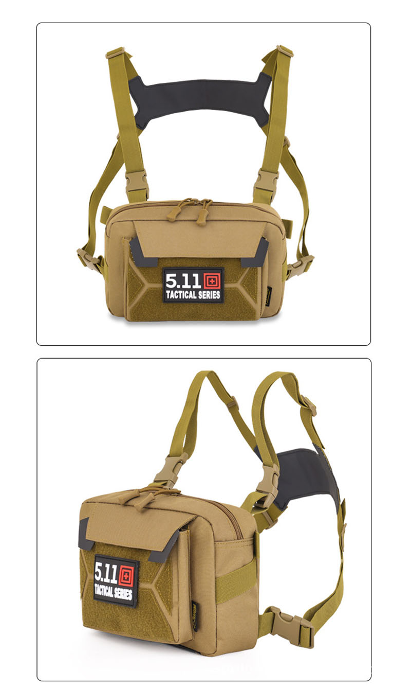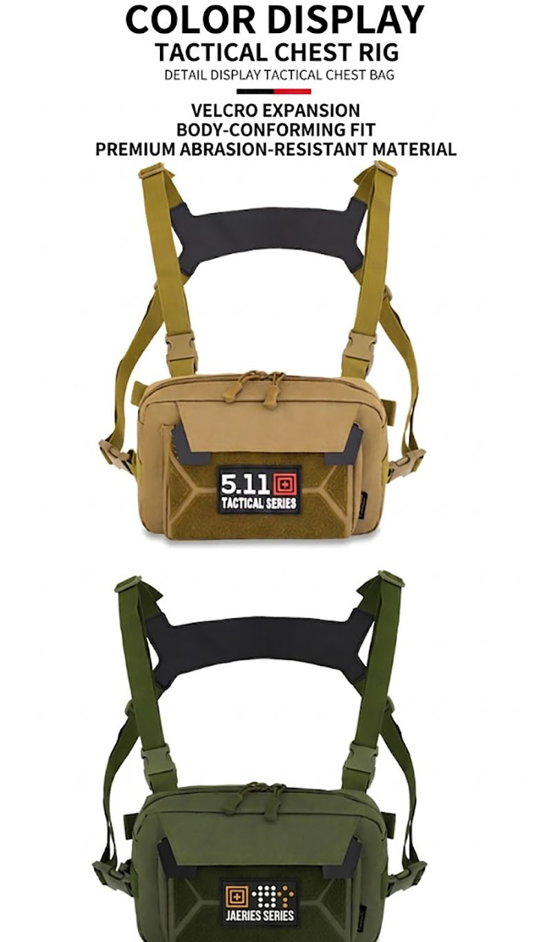 - Vest-style tactical chest bag with a secure body-hugging fit