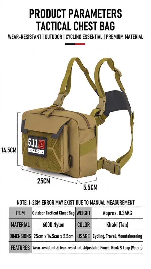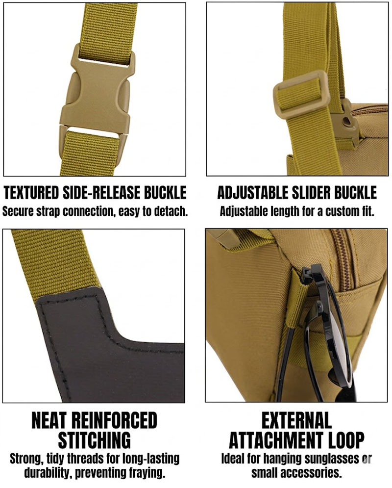 I like the tactical style and the way the bag stays secure when moving. The size is good for my phone, wallet, and small daily items without feeling too heavy.