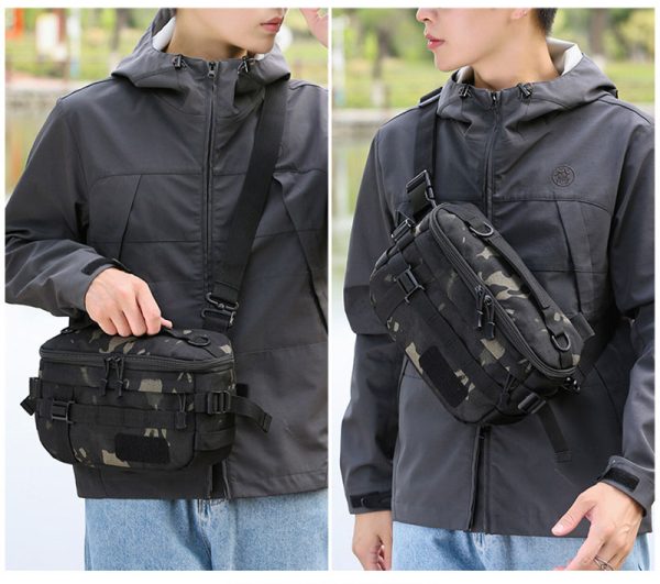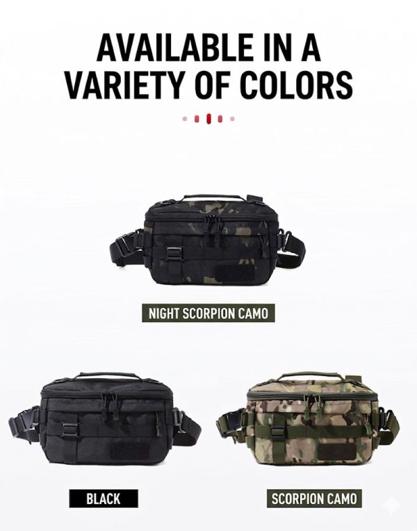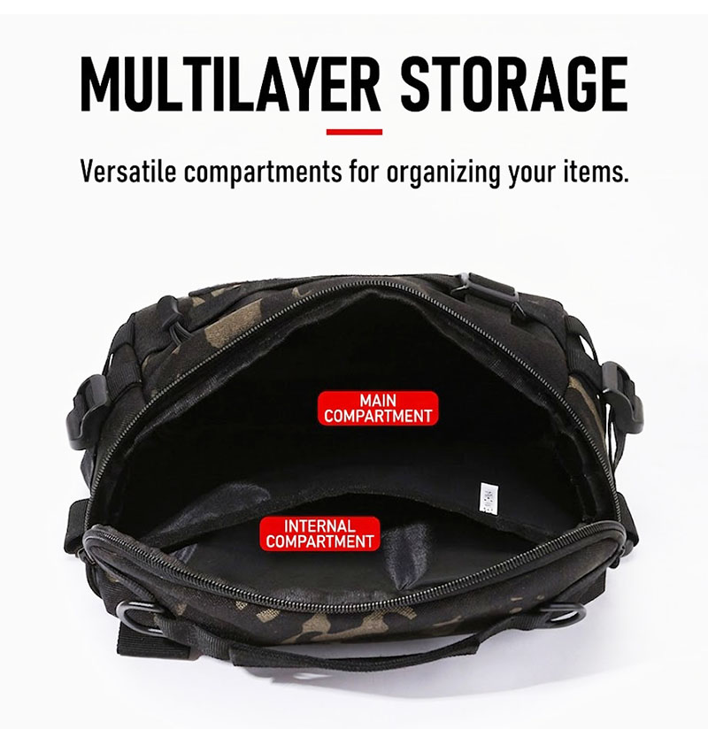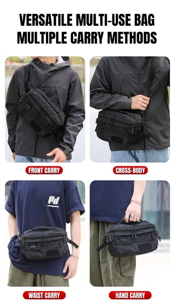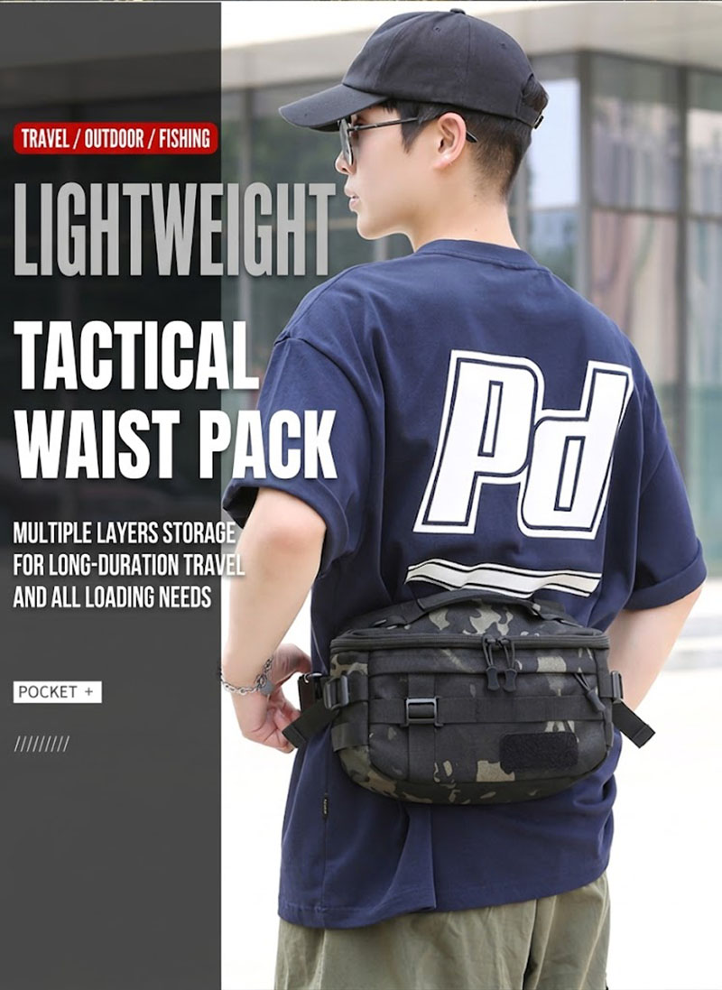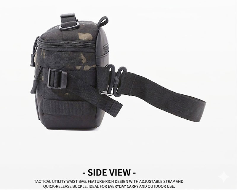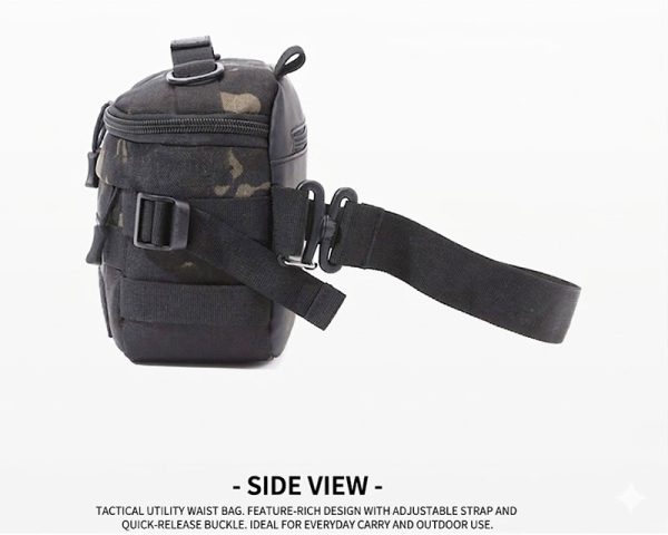 - Compact tactical waist bag with multifunction carry options