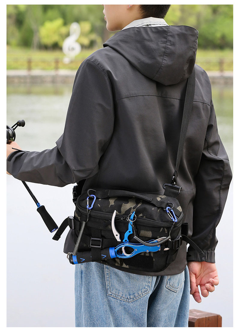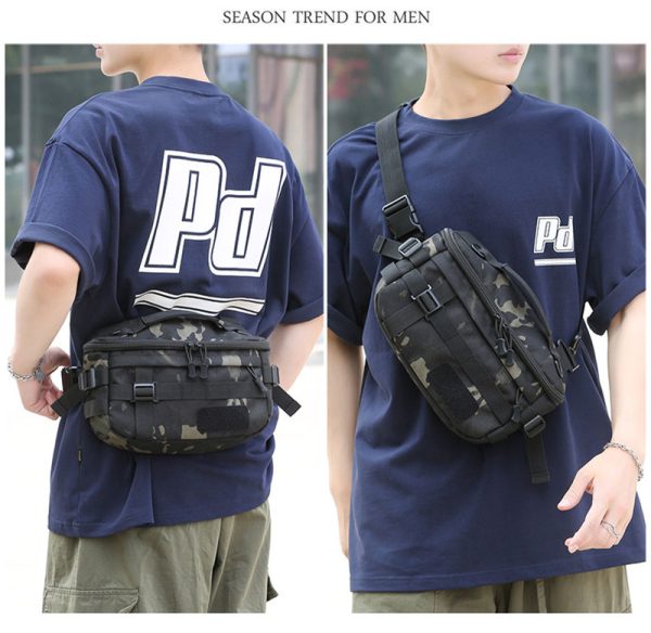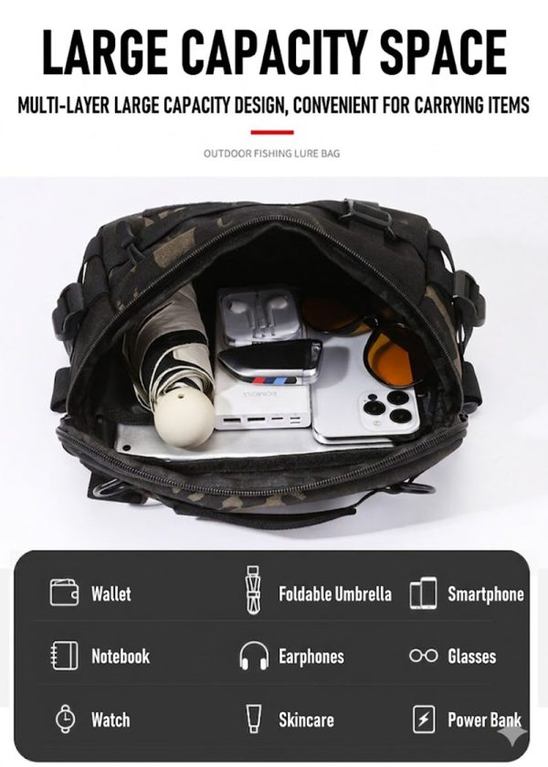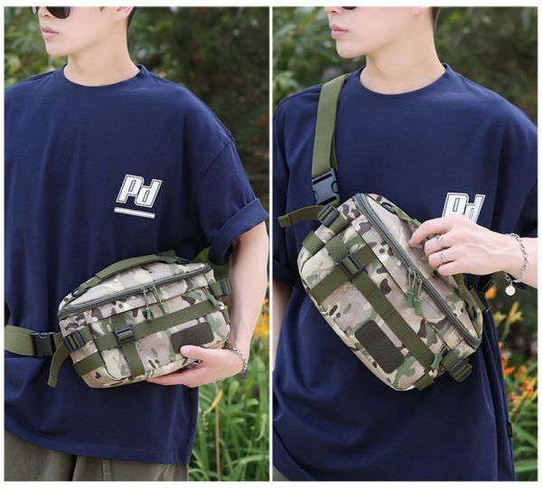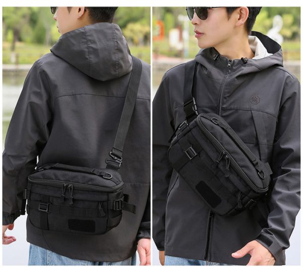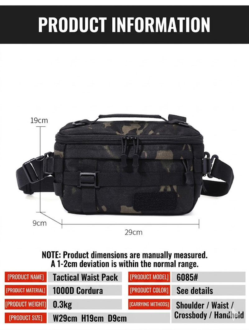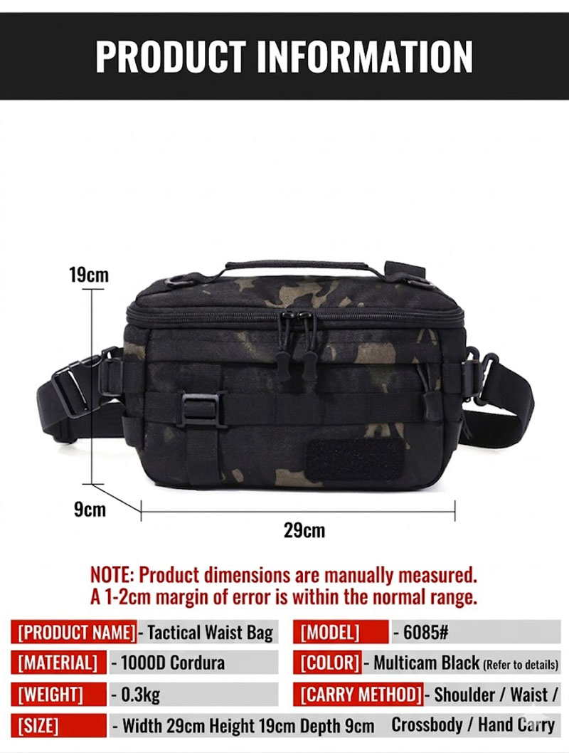 - Compact tactical waist bag with multifunction carry options
