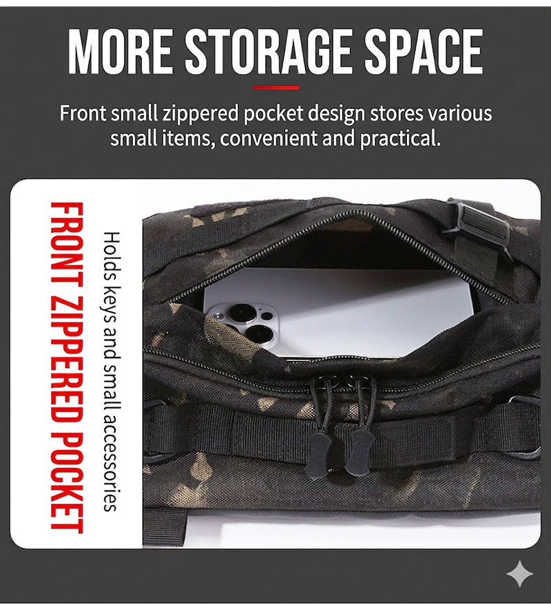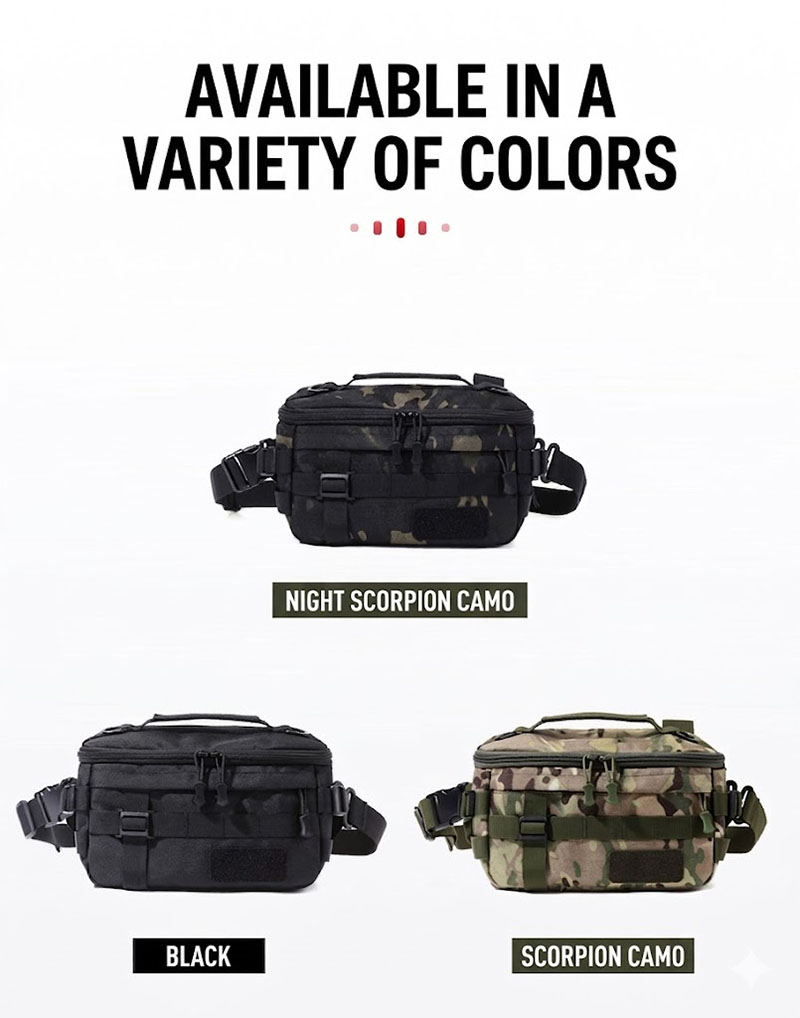 The BG41 is a compact tactical waist bag designed for flexible everyday carry, travel, riding, and outdoor use. With a 1000D-style exterior, multiple storage compartments, detachable shoulder strap, and versatile carry options, it offers organized utility in a practical size that suits Cambodia’s hot weather, active daily movement, and on-the-go lifestyle.