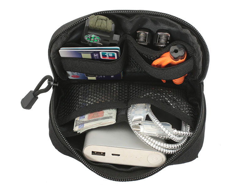 I like the clean tactical look and the inside layout. It works well for cards, cables, and small accessories, especially when I am moving around during the day.
