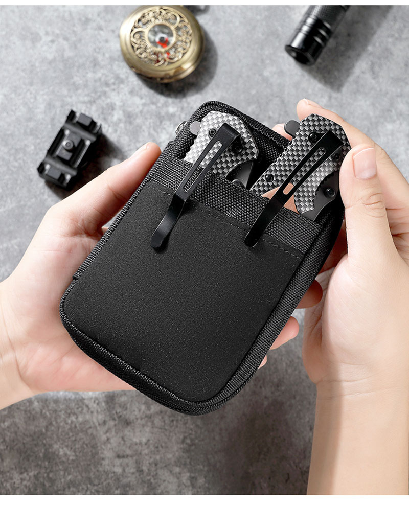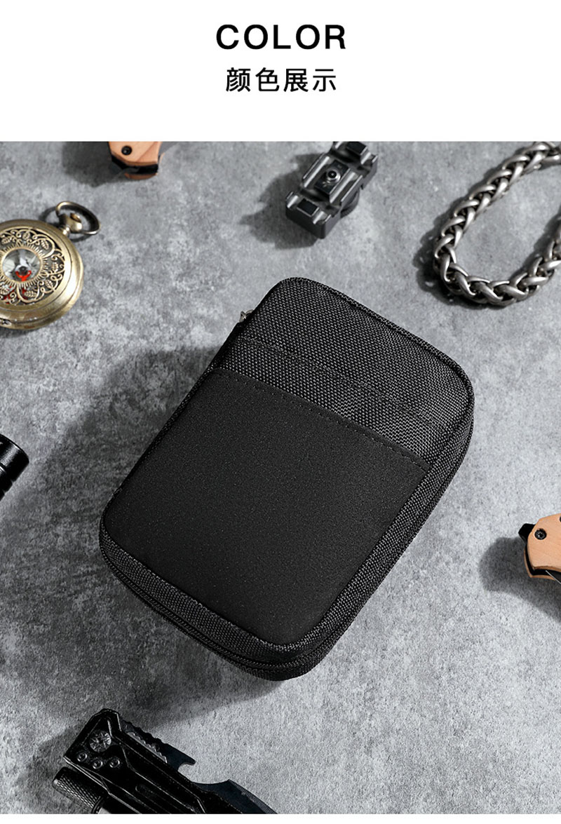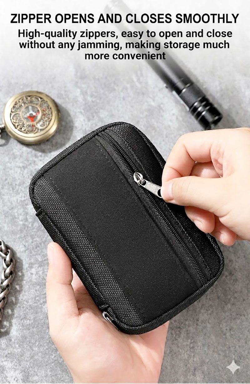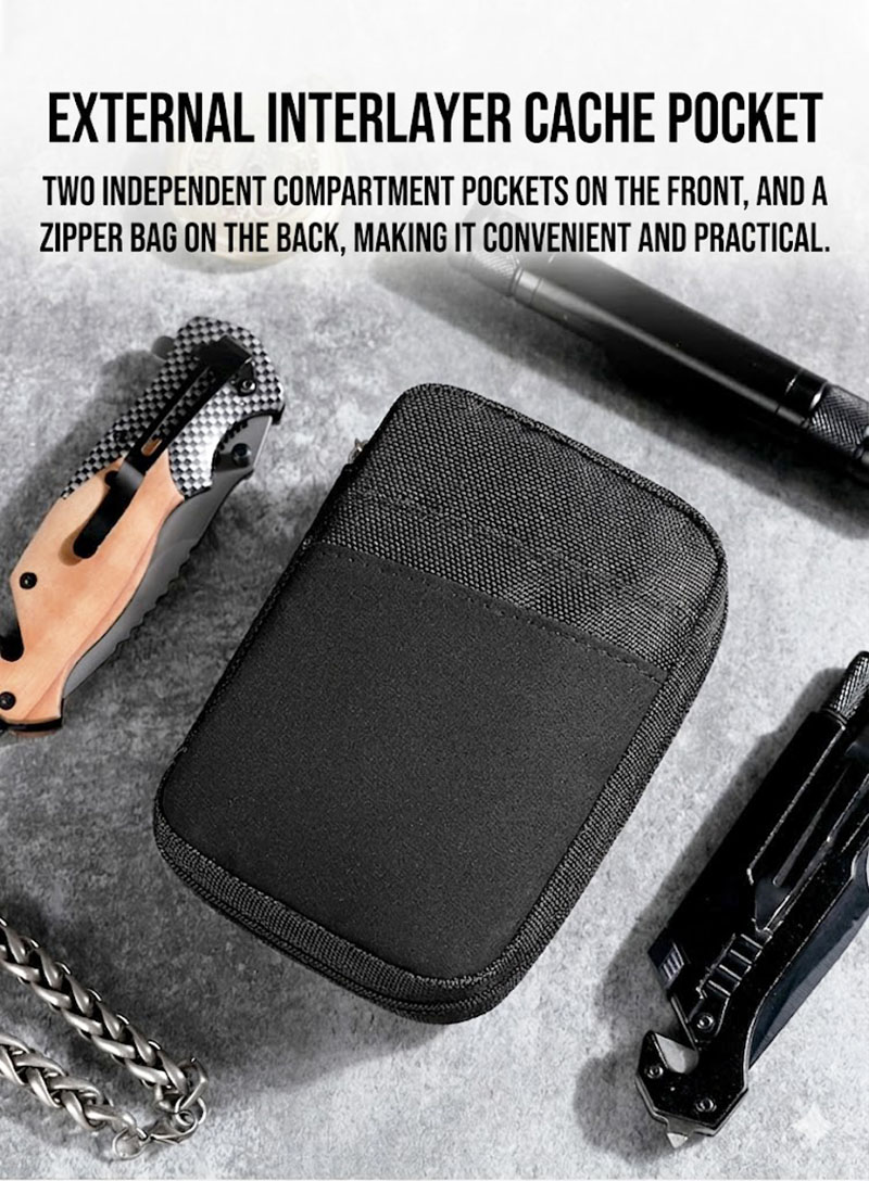 1. Compact Design for Everyday Carry This pouch is built for people who want a small organizer that still feels useful in real life. Its slim rectangular shape is easy to hold in one hand, simple to slip into a larger bag, and convenient to carry when you only need your most important essentials close at hand. The overall look is clean, practical, and slightly tactical, making it suitable for outdoor use, daily errands, and casual everyday carrying.
